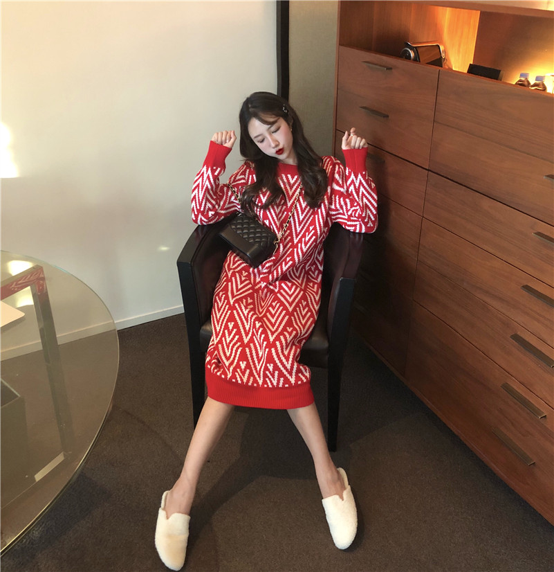 / 韓版新款chic寬松長款套頭小香風網紅毛衣女秋冬時尚中長款毛衣裙