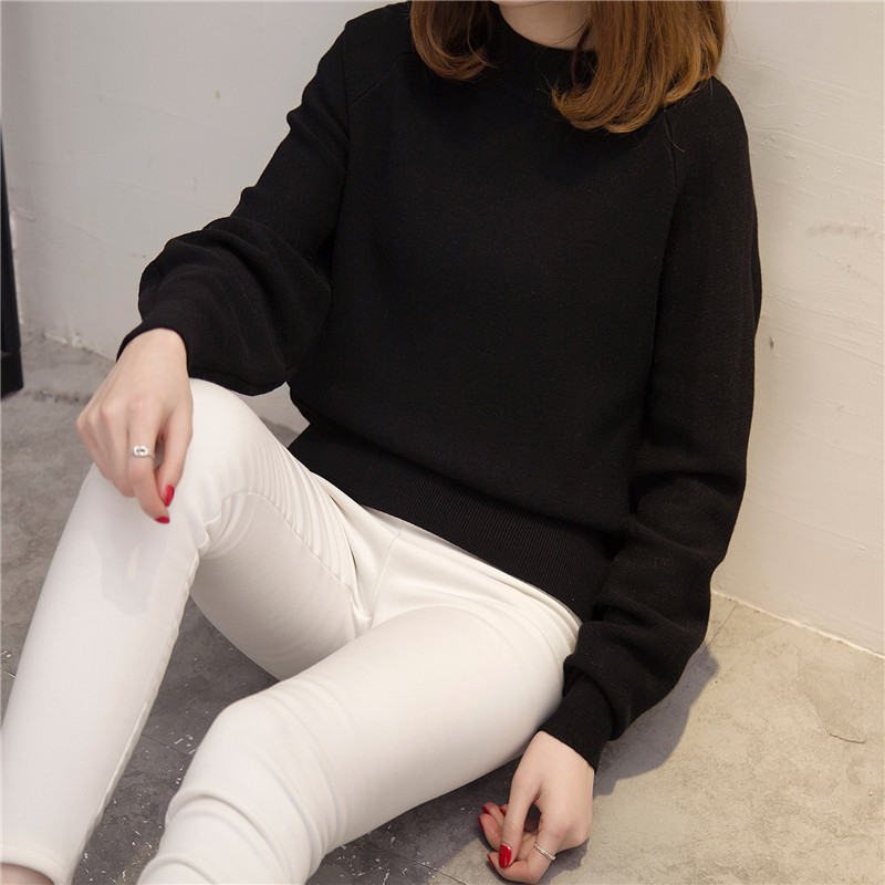 女裝冬裝新款潮圓領針織衫女套頭韓版純色毛衣女秋冬打底衫