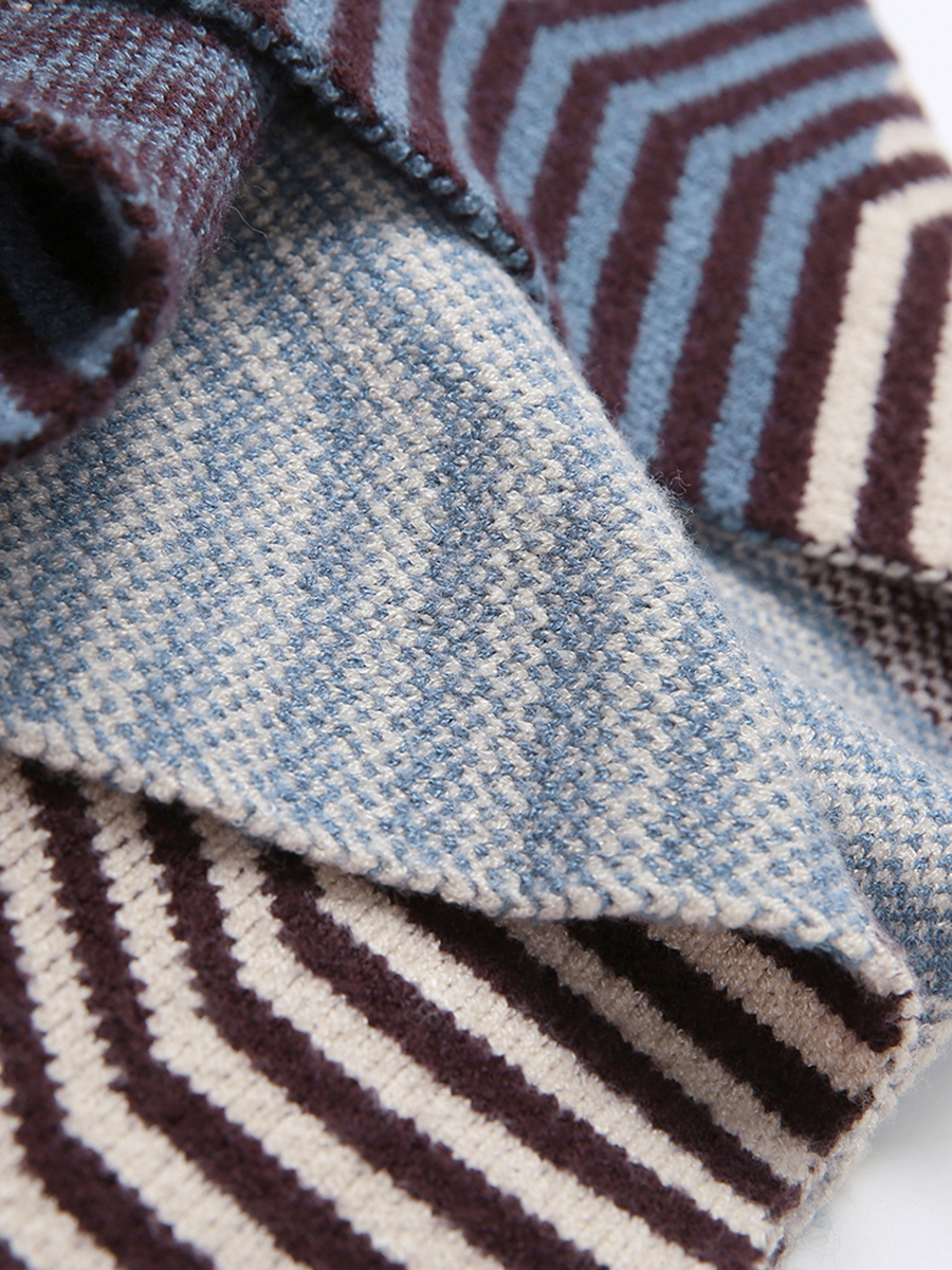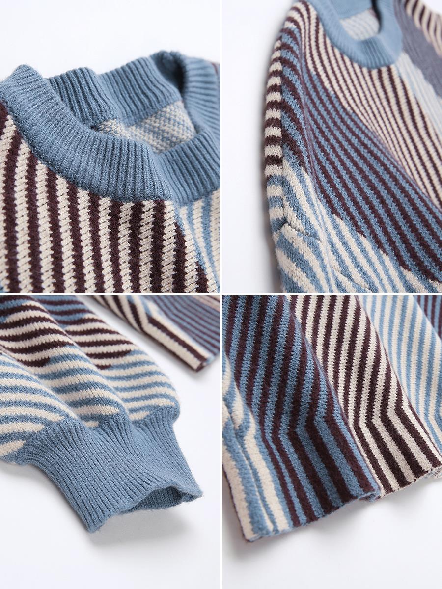 MG小象燈籠袖毛衣女寬松條紋上衣冬季新款學生圓領套頭針織毛線衣
