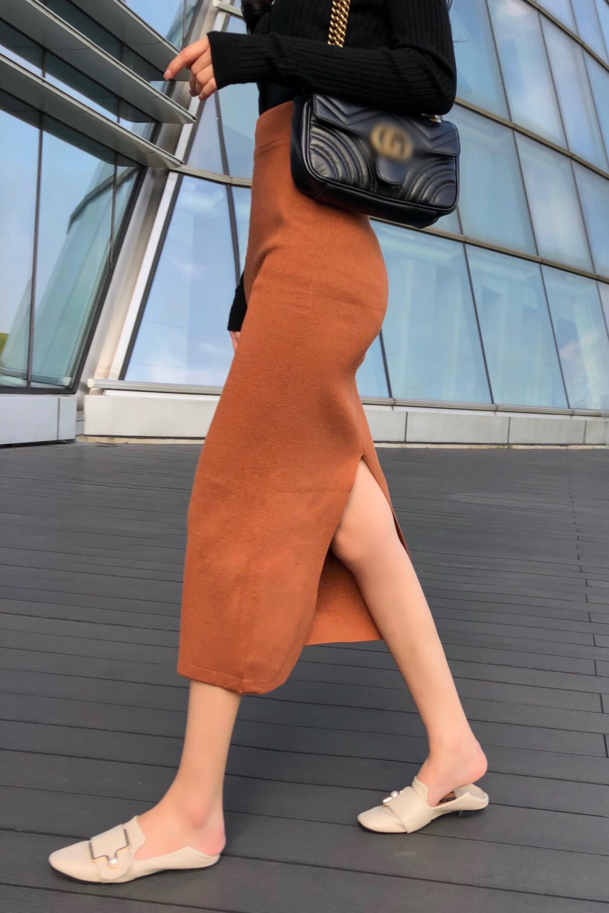 裙子女新款韓版chic秋天港味溫柔復古高腰開叉修身針織百搭半身裙