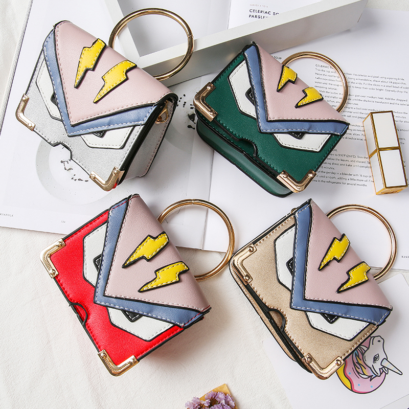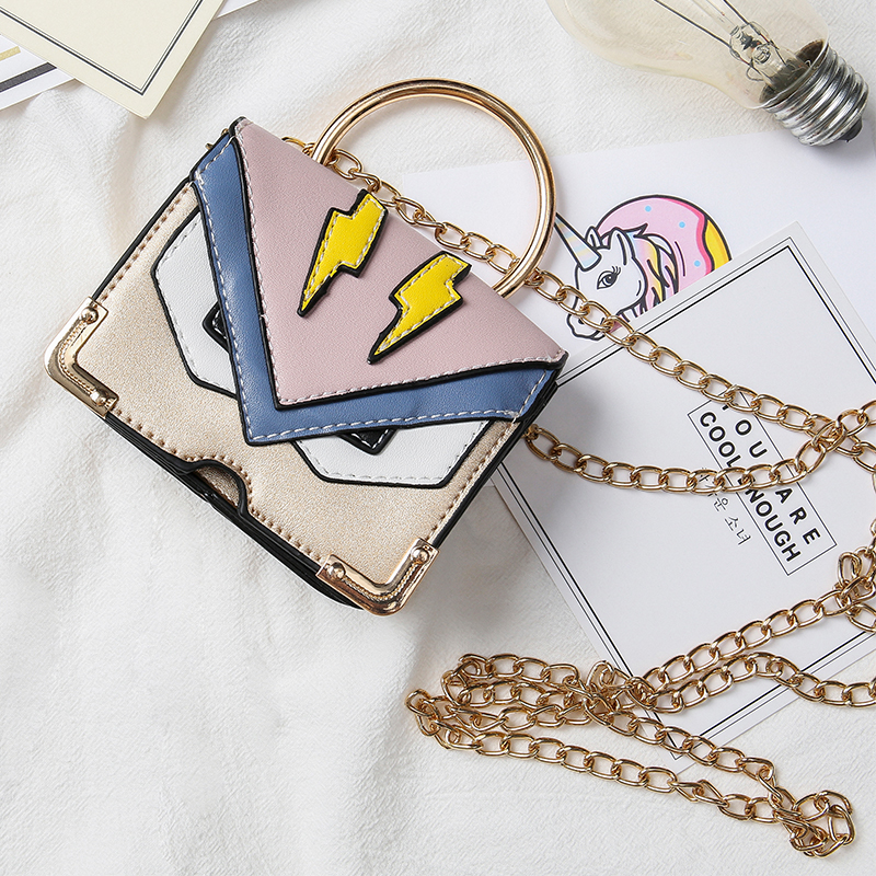 MG小象時尚撞色斜挎包女新款卡通可愛零錢包迷你單肩鏈條小方包潮