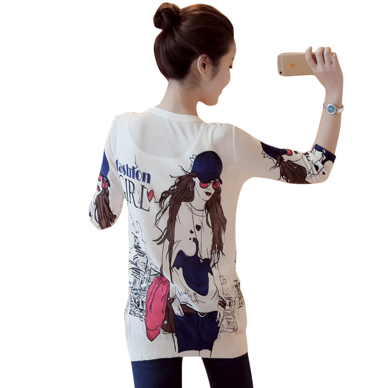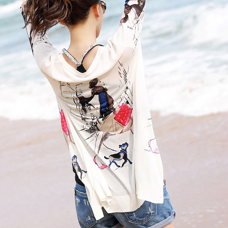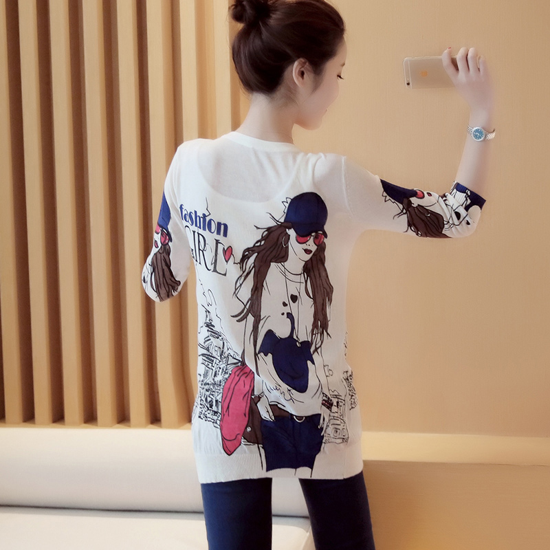 / 外搭針織開衫女中長款薄款印花針織衫外套女夏七分袖防曬衣空調衫
