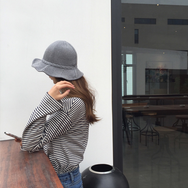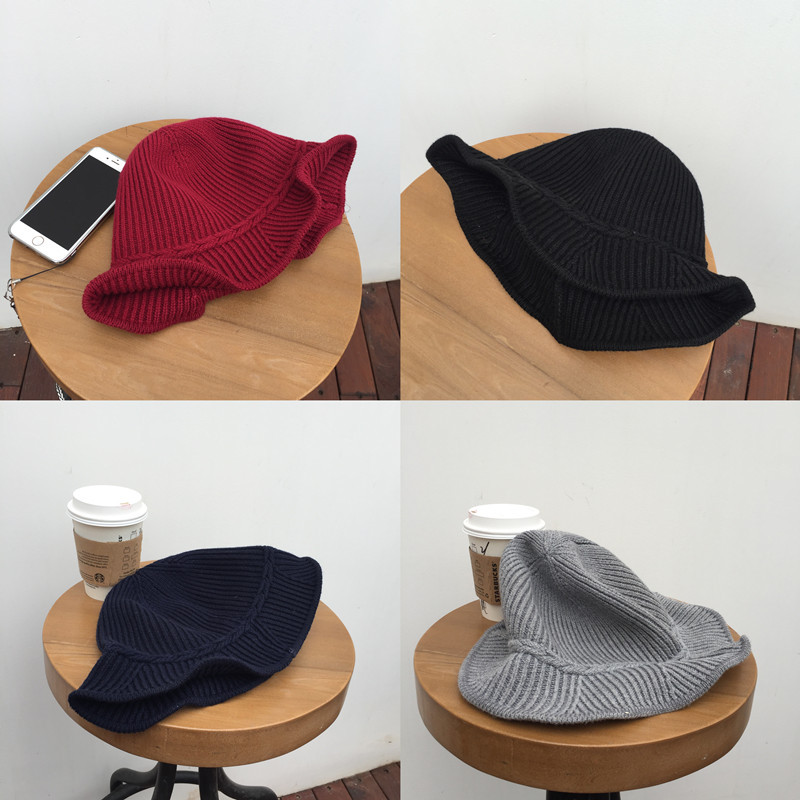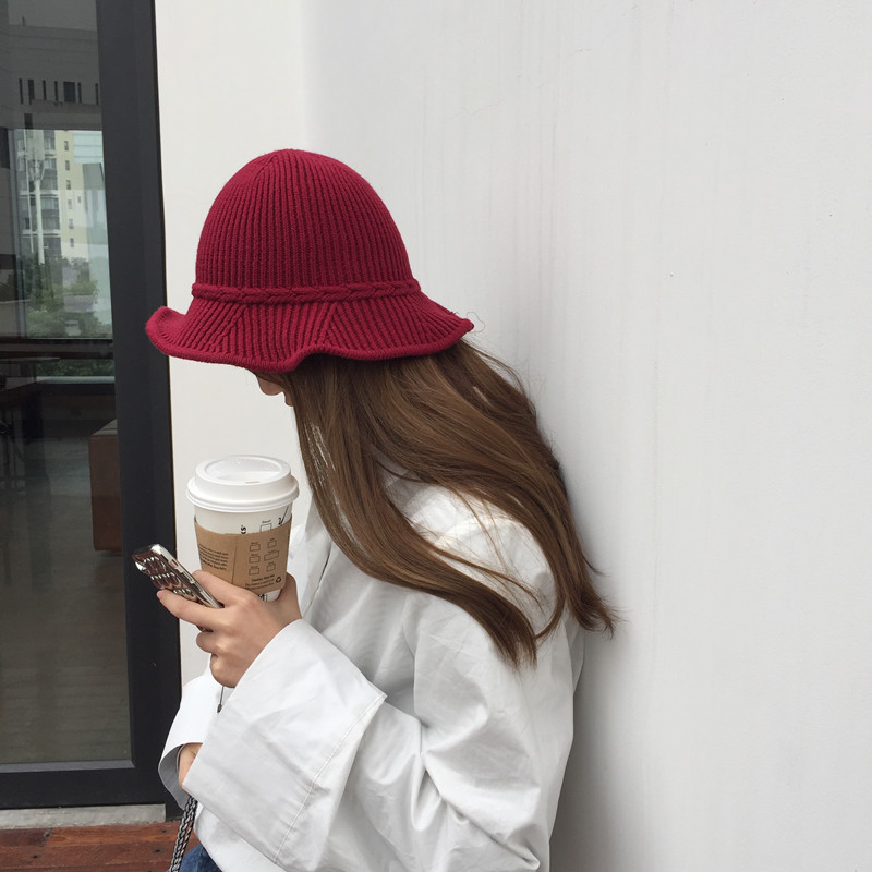 漁夫帽女秋冬2018新款韓版百搭保暖荷葉邊針織帽氣質毛線帽子盆帽