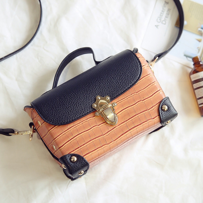 包包女新款潮撞色箱子包單肩女包手提小包韓版百搭斜挎小方包
