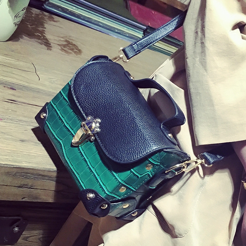 / 包包女新款潮撞色箱子包單肩女包手提小包韓版百搭斜挎小方包