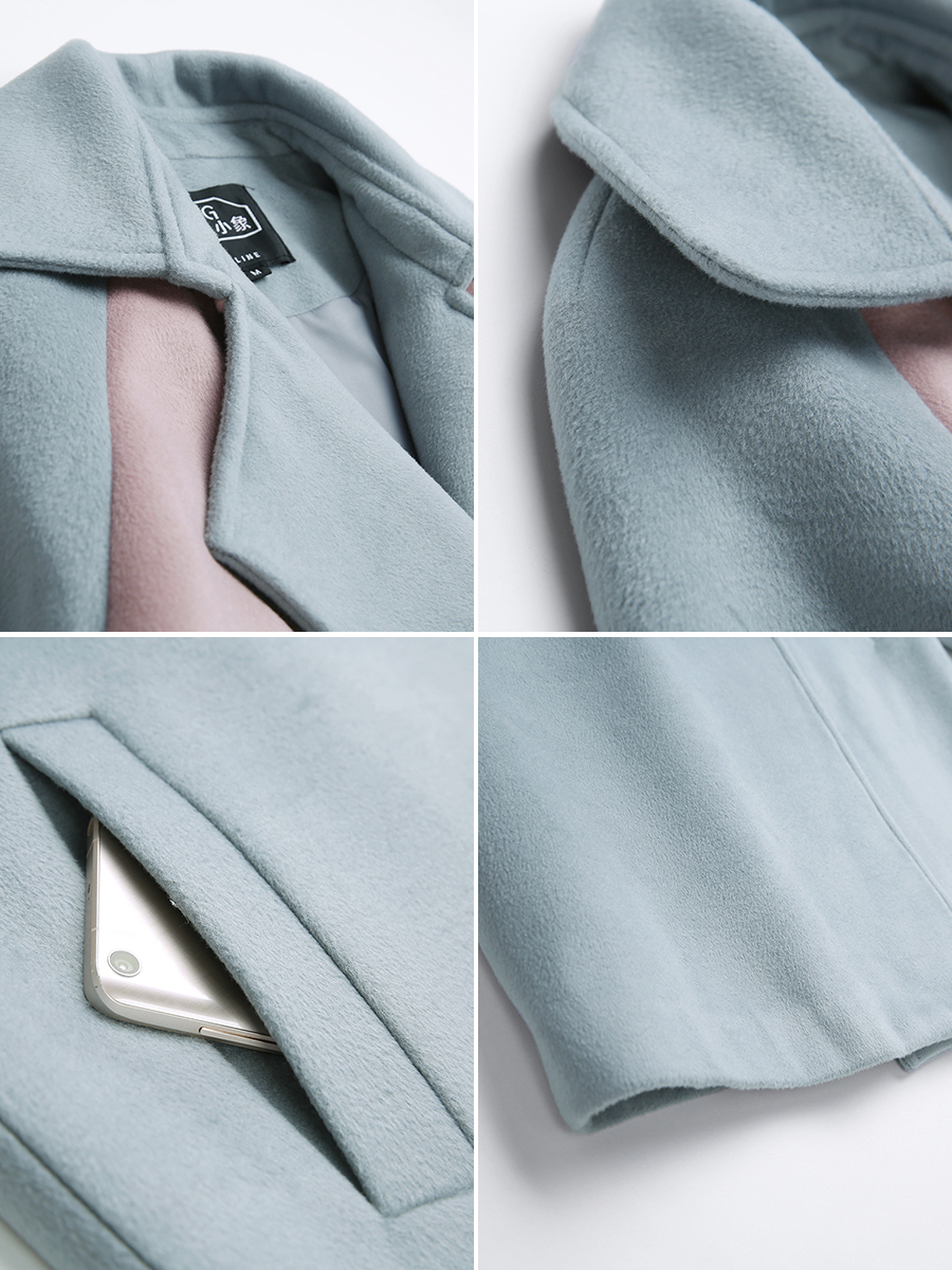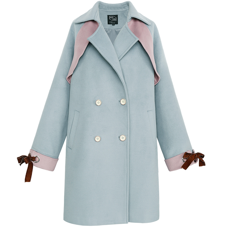 MG小象中長款毛呢外套女新款寬松雙排扣學生冬季2018流行呢子大衣