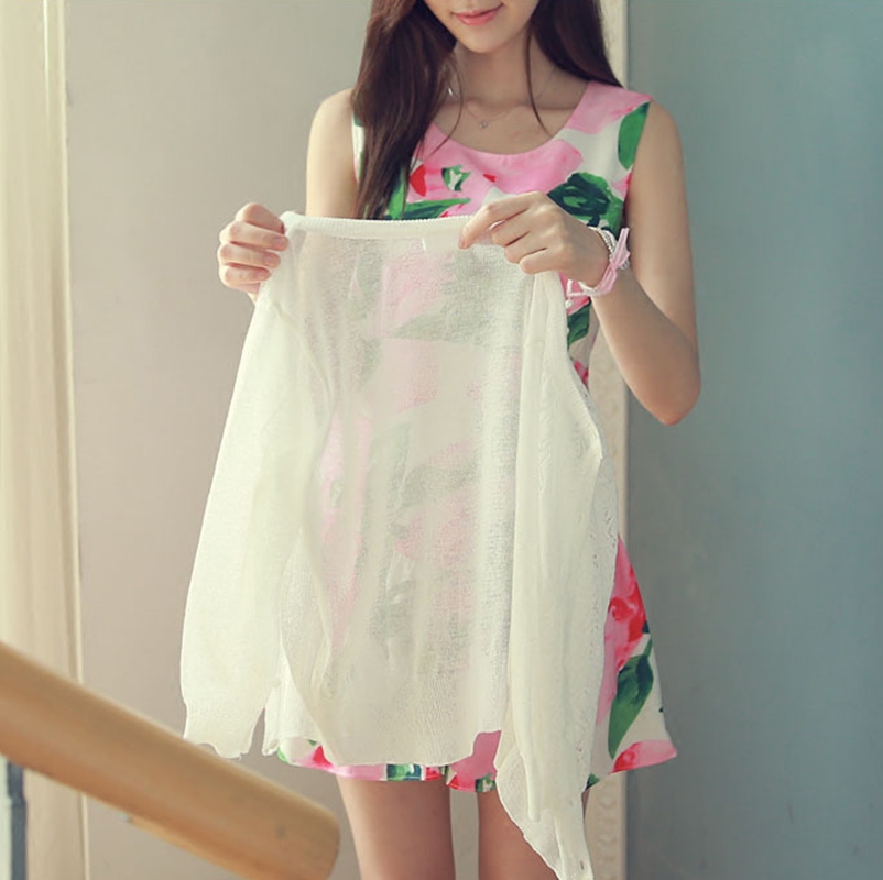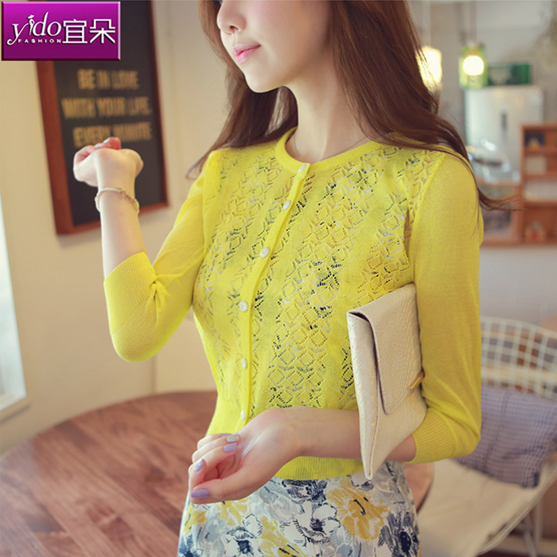 宜朵針織開衫女薄款短款七分袖外搭防曬衣女夏鏤空百搭針織衫外套