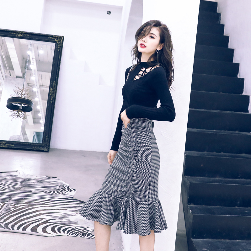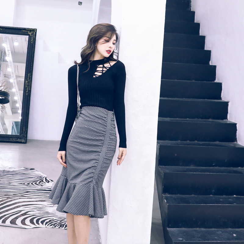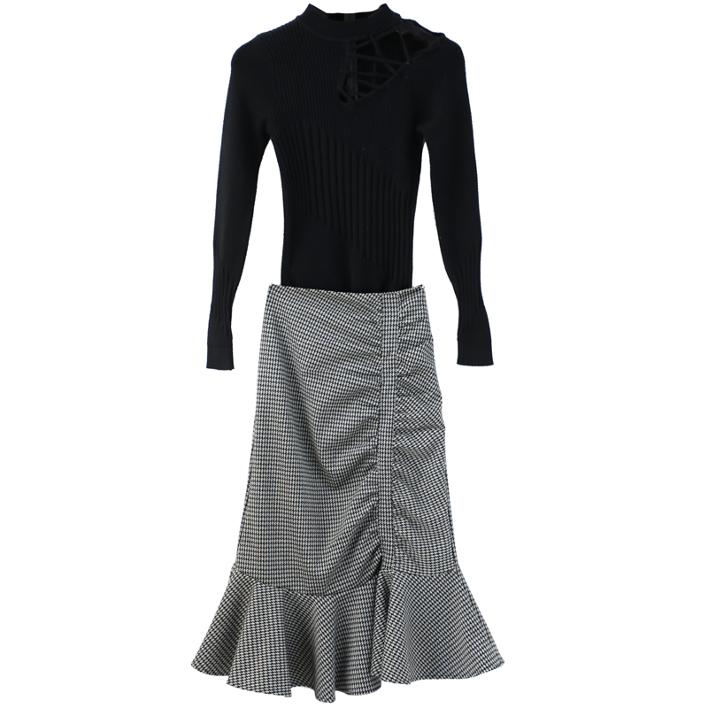 / 名媛氣質秋冬裝半身裙女2018新款毛衣配魚尾裙子兩件套裝秋冬季