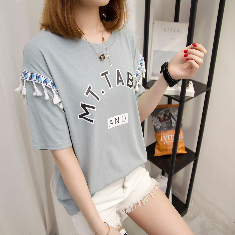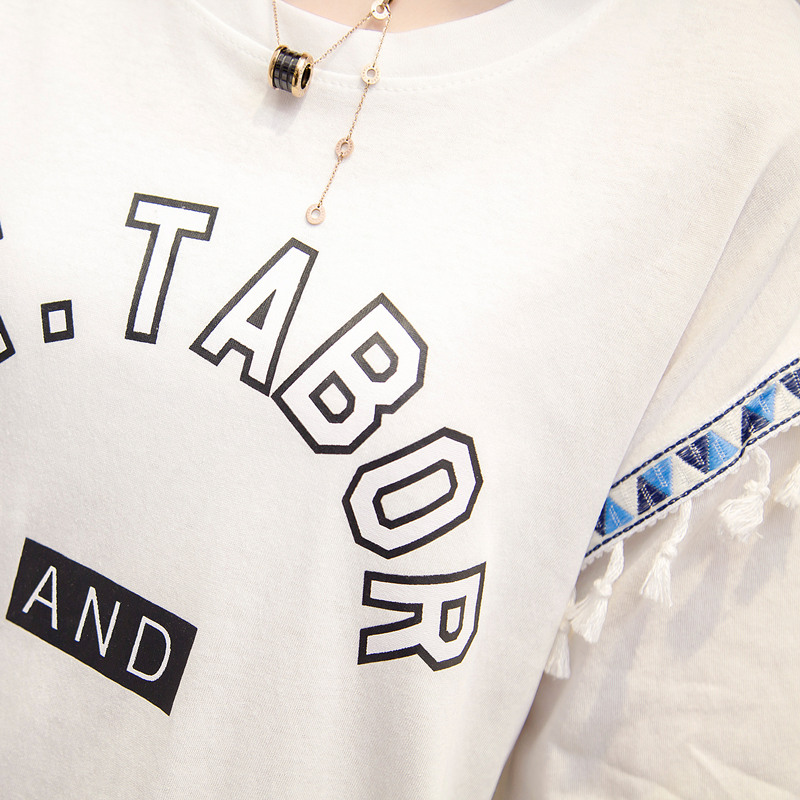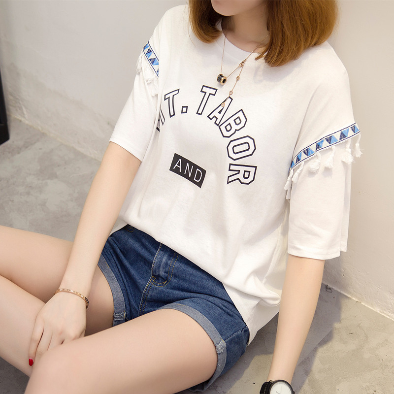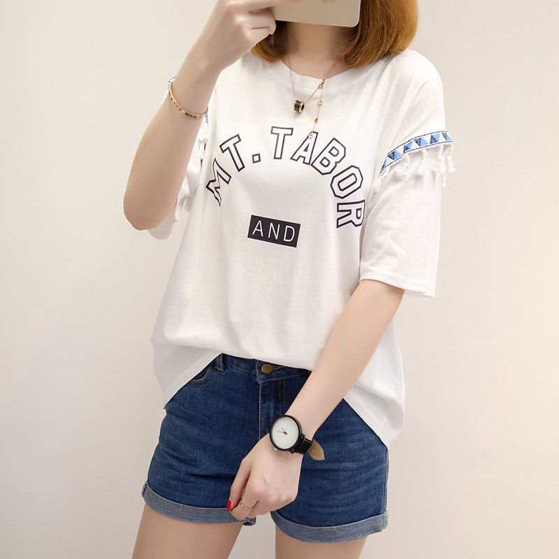 / 夏裝新款女裝上衣寬松白色t恤女短袖系帶韓版簡約體恤衫百搭