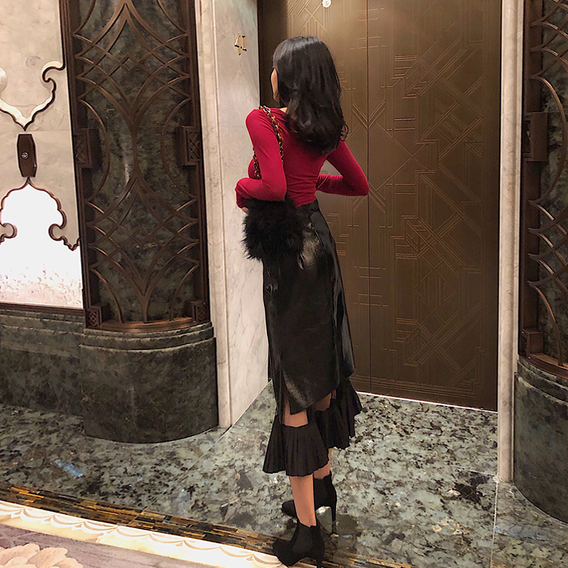 / 性感百搭高腰pu皮裙半身裙長裙短款露臍上衣打底衫韓版時尚套裝女