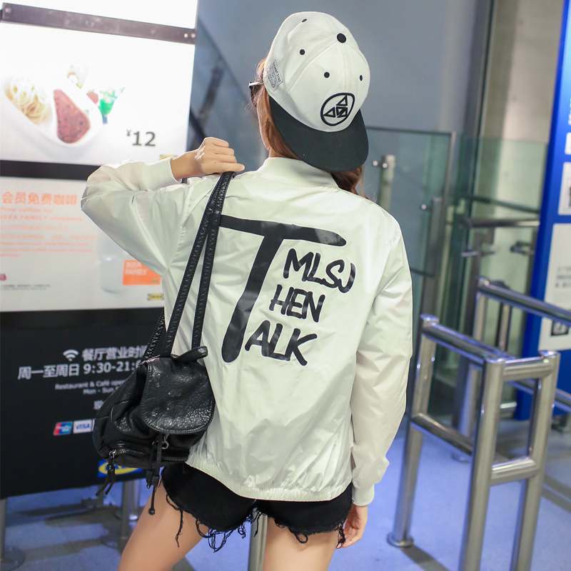 / 短外套女長袖春裝新款韓版寬松字母印花學生糖果色防曬衣女夏