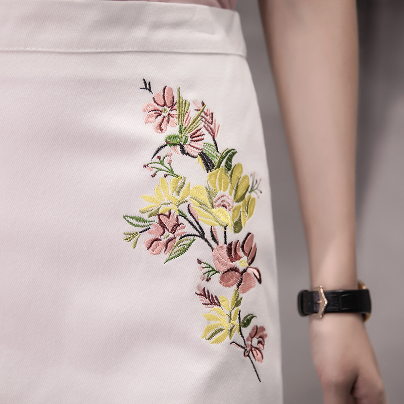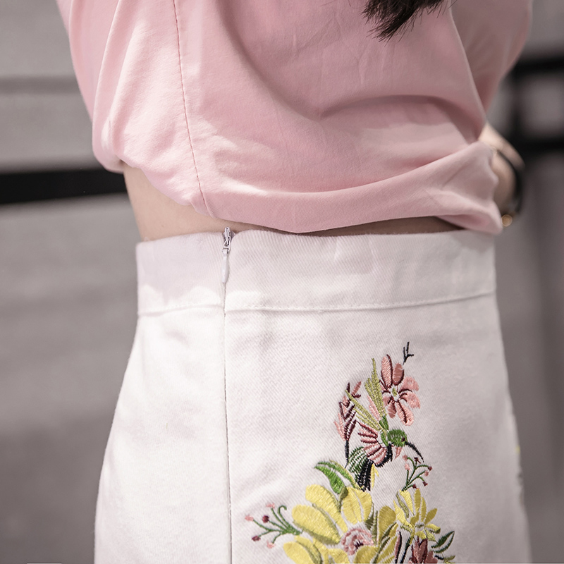 / 刺繡A字裙半身裙女韓版高腰顯瘦裙子包臀短裙花朵半裙夏季包裙子