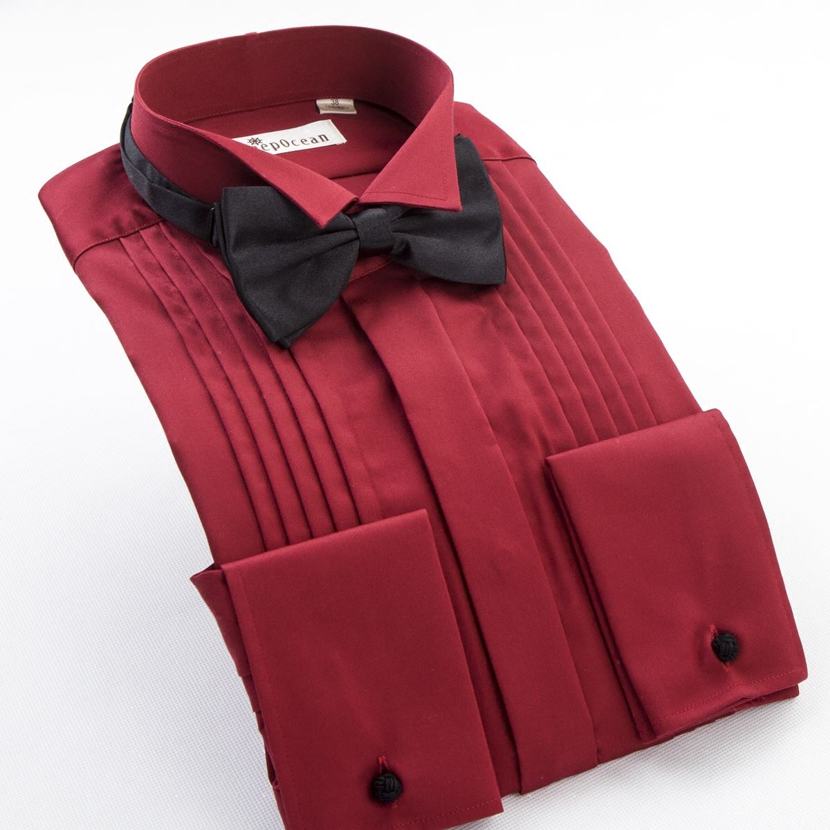 / 深海男士紅色襯衫長袖絲光棉燕子領法式伴郎禮服男新郎結婚襯衣