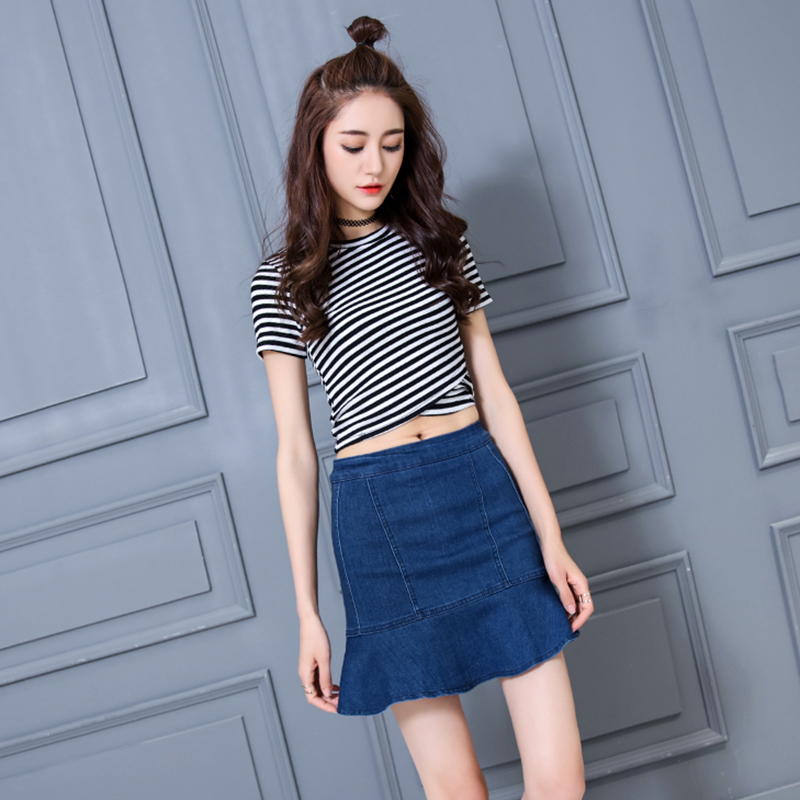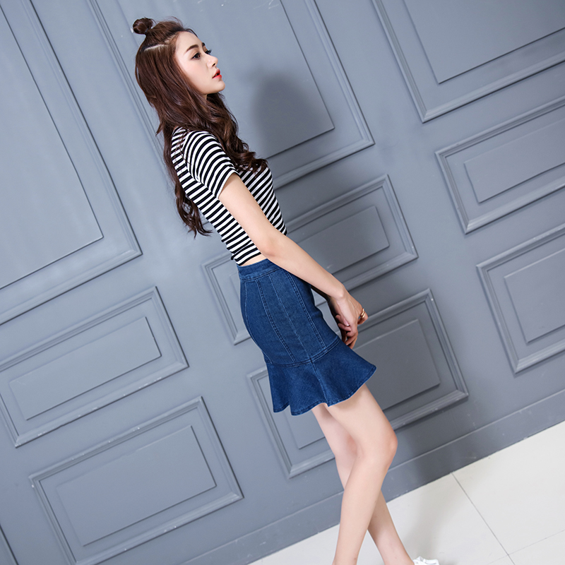 荷葉邊包臀牛仔褲裙女高腰牛仔半身裙a字魚尾裙半裙顯瘦短裙裙子