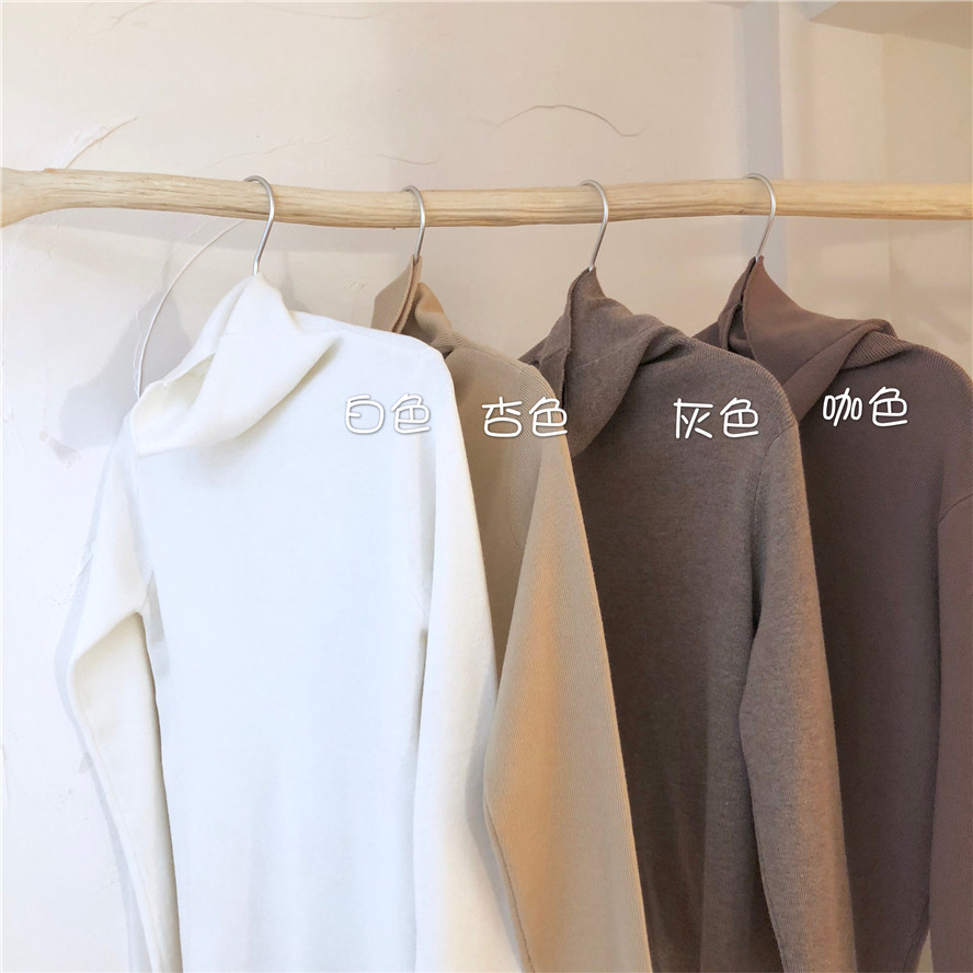 秋冬新款純色百搭高領堆堆領針織衫上衣chic復古簡約長袖打底衫女