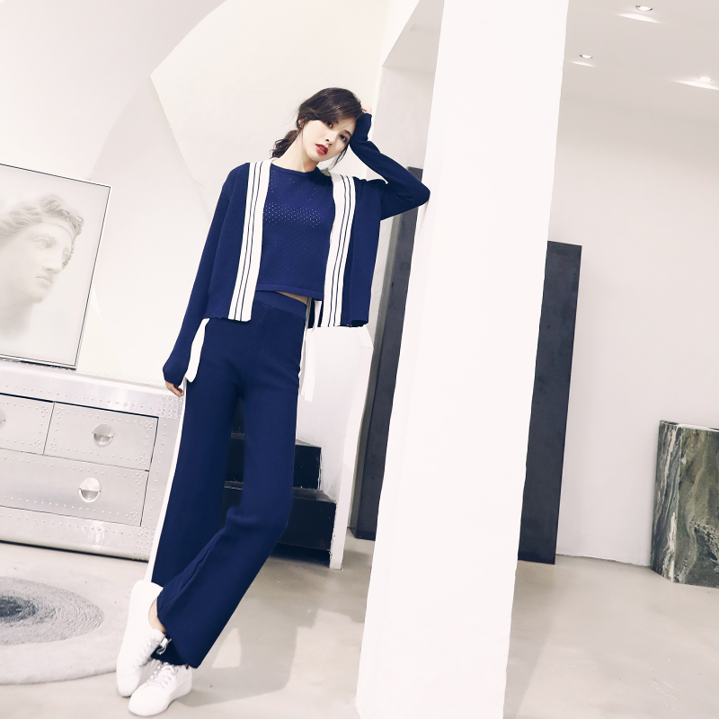 / 針織套裝女秋季輕熟風御姐范女裝小清新心機墜感闊腿褲毛衣三件套