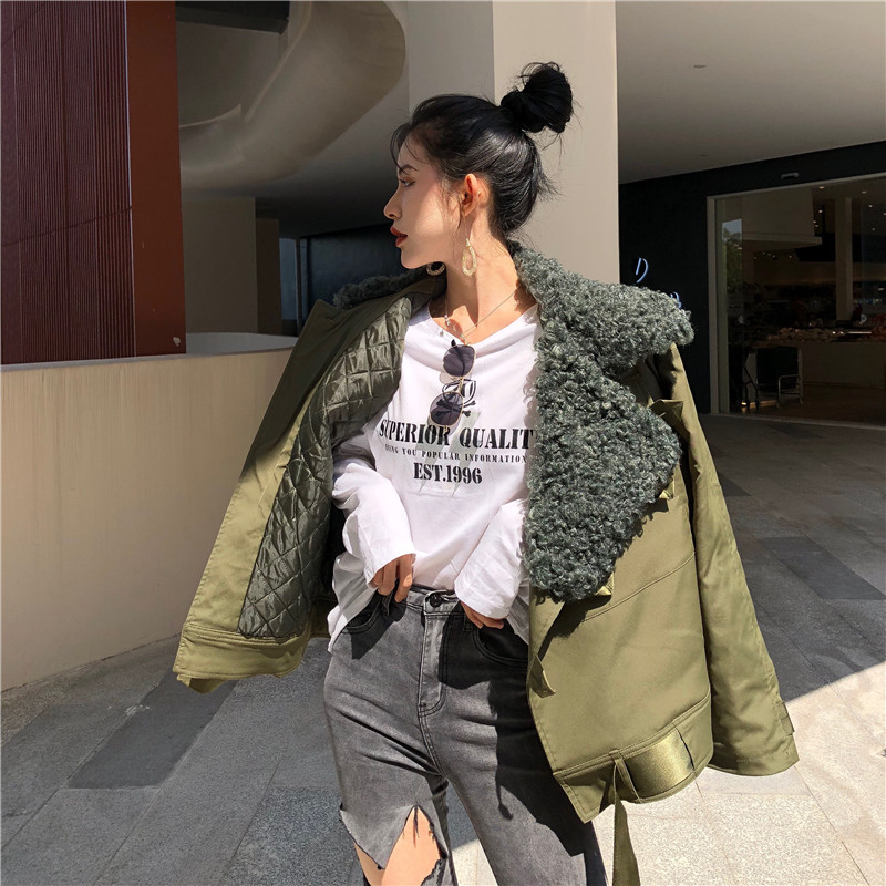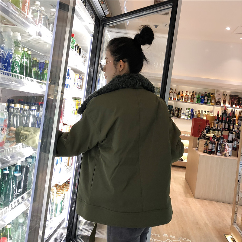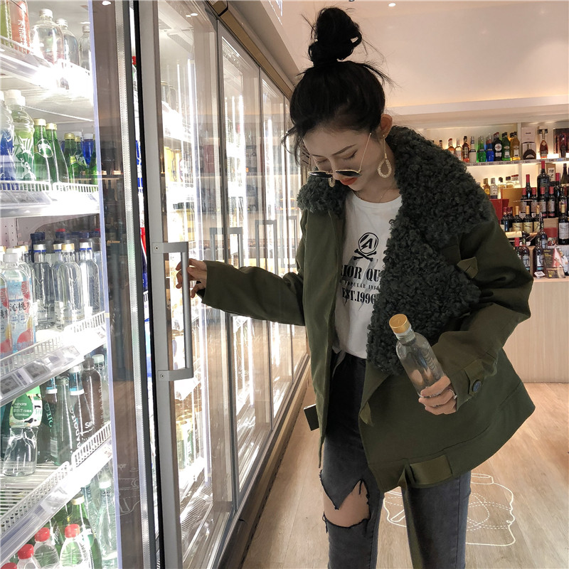 棉服女冬季新款chic復古工裝大衣寬松休閑大毛領長袖加厚開衫外套