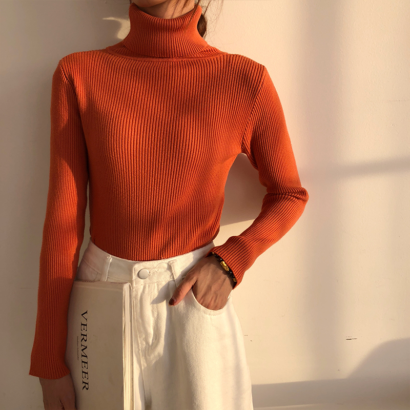 / 秋冬新款韓版時尚chic百搭修身顯瘦上衣女純色加厚高領打底針織衫