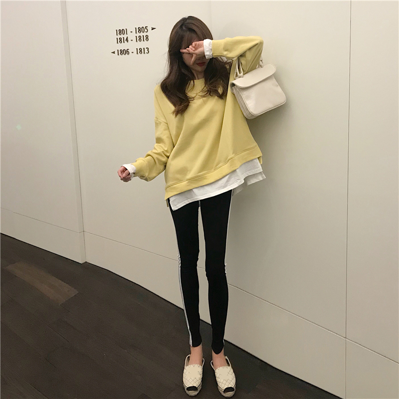 / 新款韓版時尚套裝寬松慵懶風拼色衛衣緊身小腳褲長褲子chic兩件套