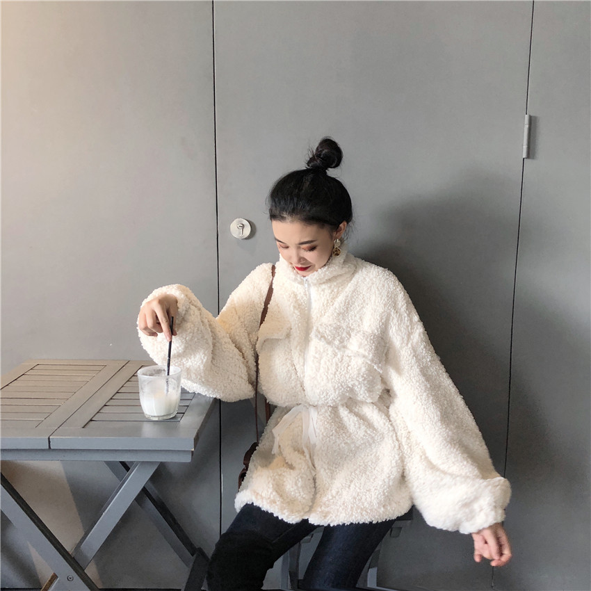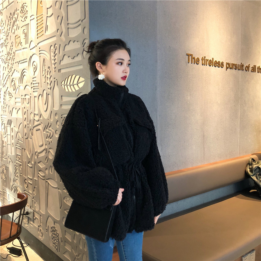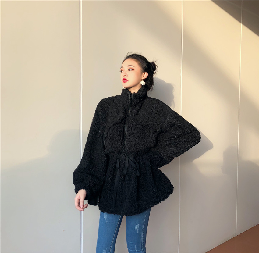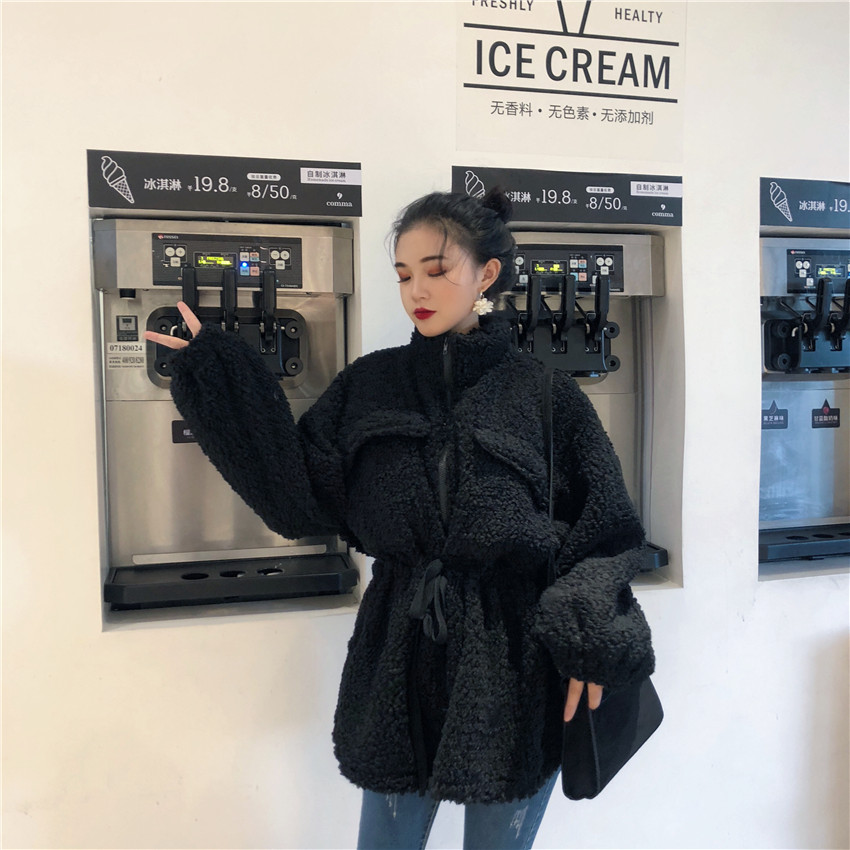 冬季新款時尚百搭保暖顯瘦chic大衣韓版立領拉鏈收腰顯瘦上衣外套