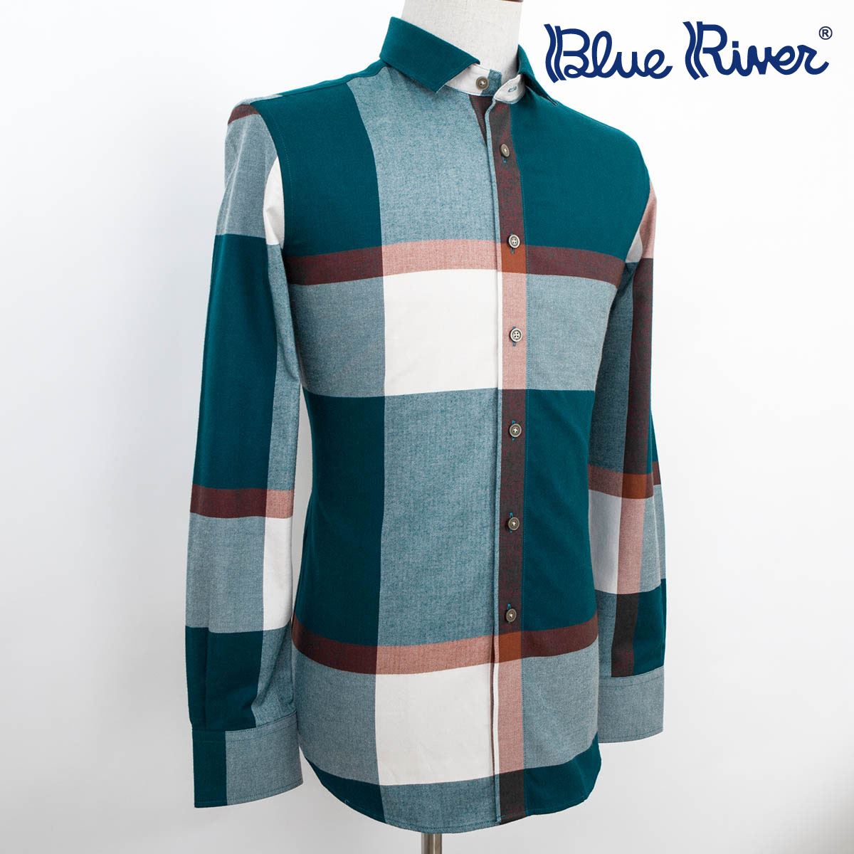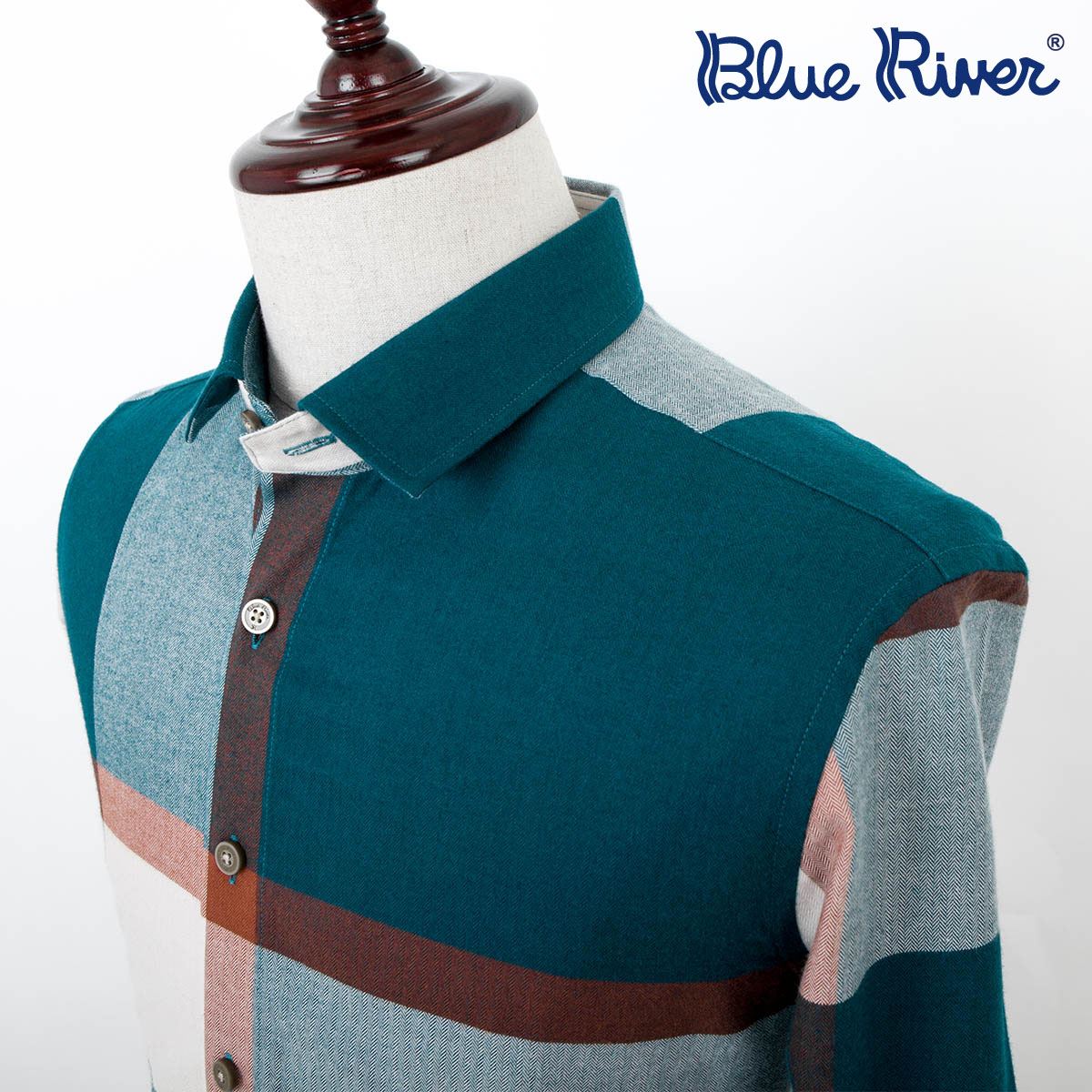 藍河秋季男裝保暖款天絲棉磨毛格子男長袖襯衫打底都市休閑襯衣