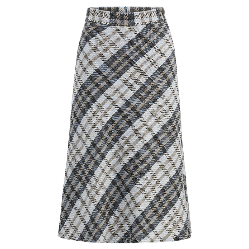 MG小象高腰格子半身裙女中長款寬松冬季2018新款時尚復古a字裙子