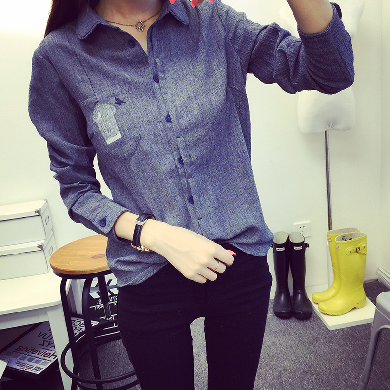 秋裝新款韓版女裝休閑牛仔色長袖襯衫寬松打底衫女襯衣