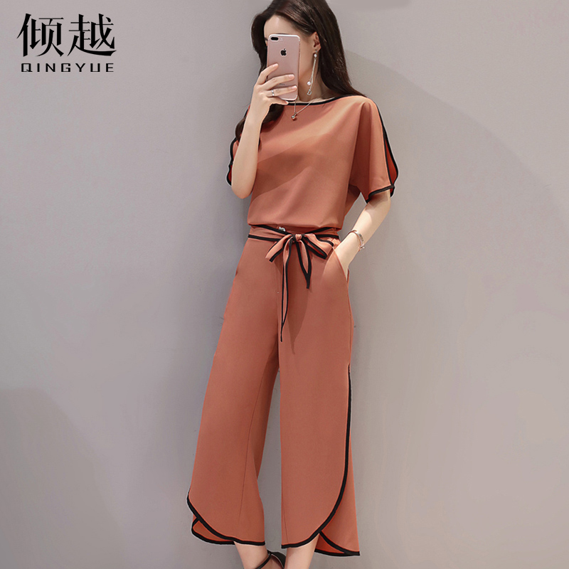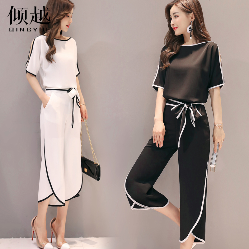 時尚套裝女夏季2017新款洋氣女裝韓版小香風顯瘦氣質闊腿褲兩件套