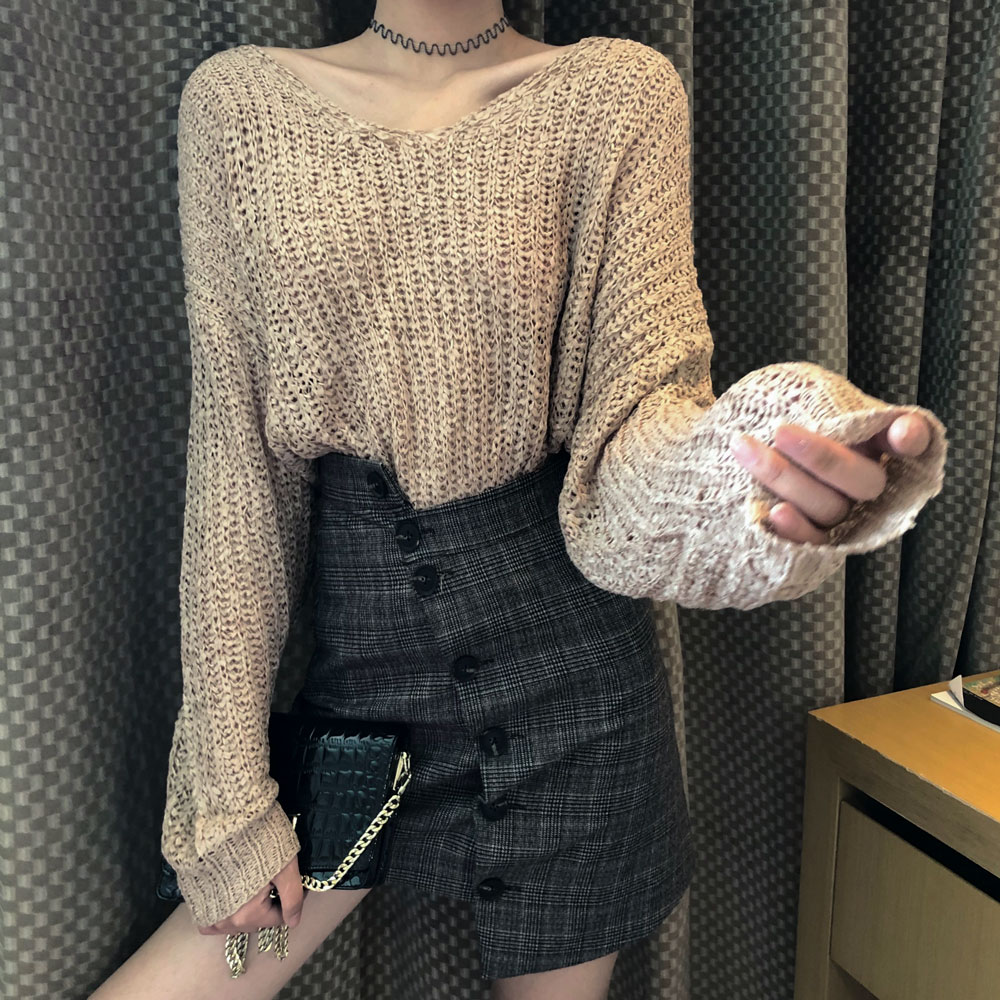 chic港風復古寬松長袖秋季新款韓版百搭慵懶氣質上衣薄針織衫毛衣