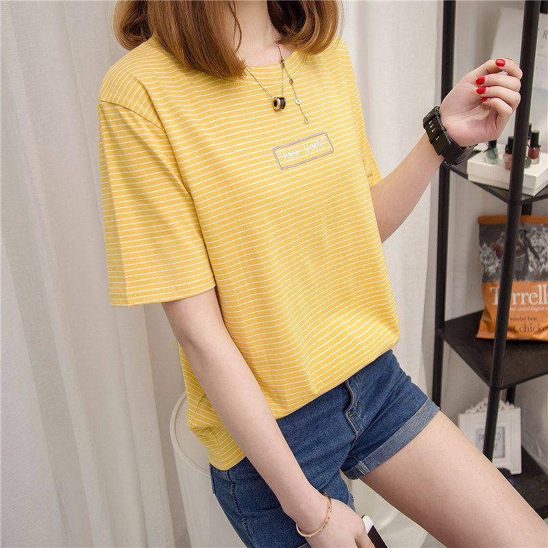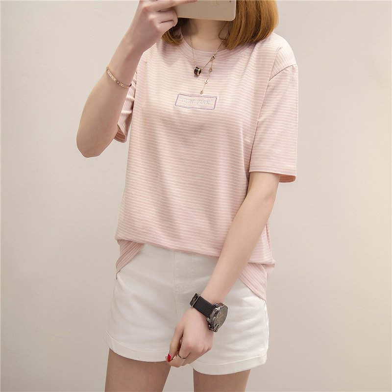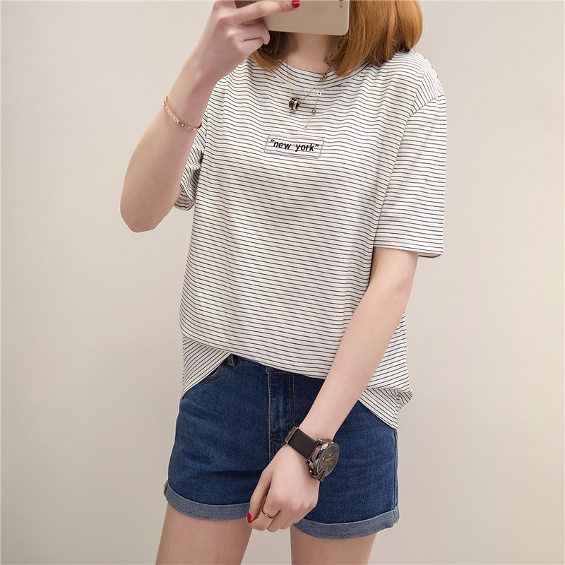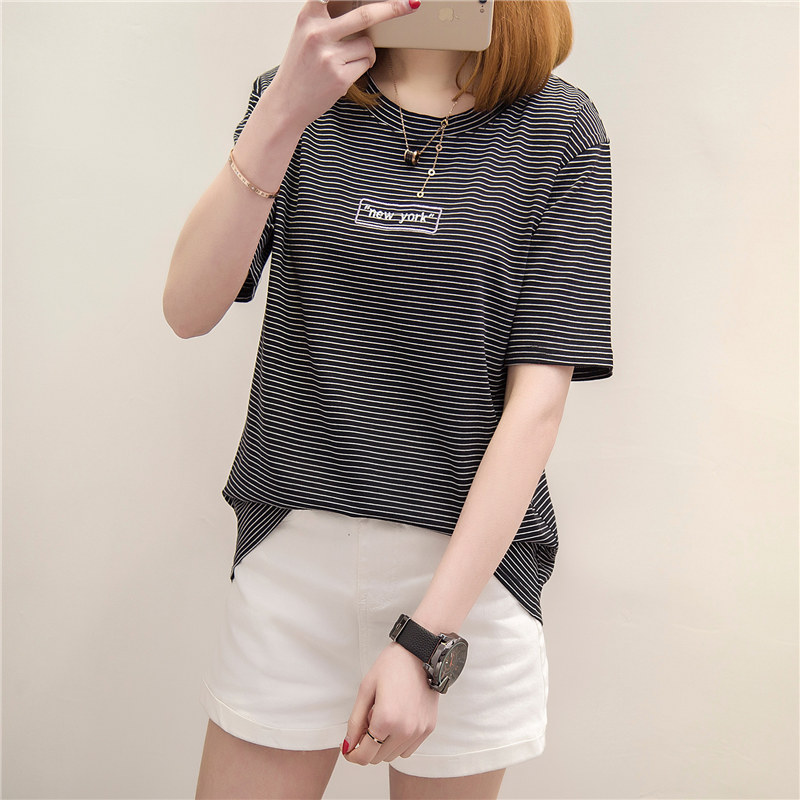 條紋短袖t恤女寬松上衣韓版體恤女夏學生百搭女裝春裝新款潮