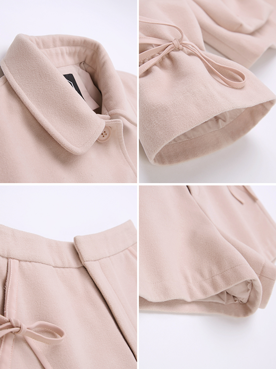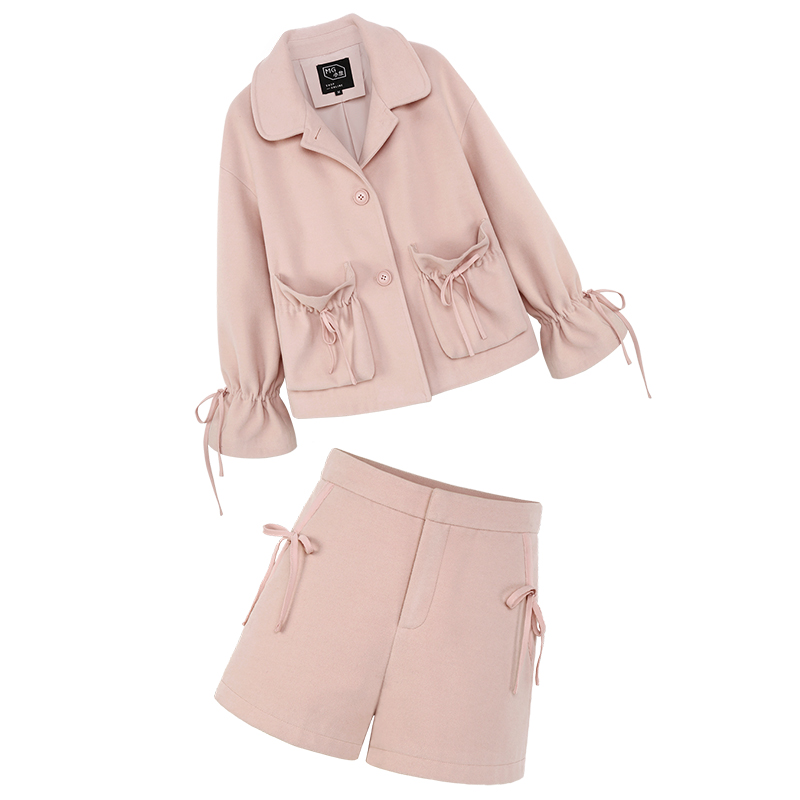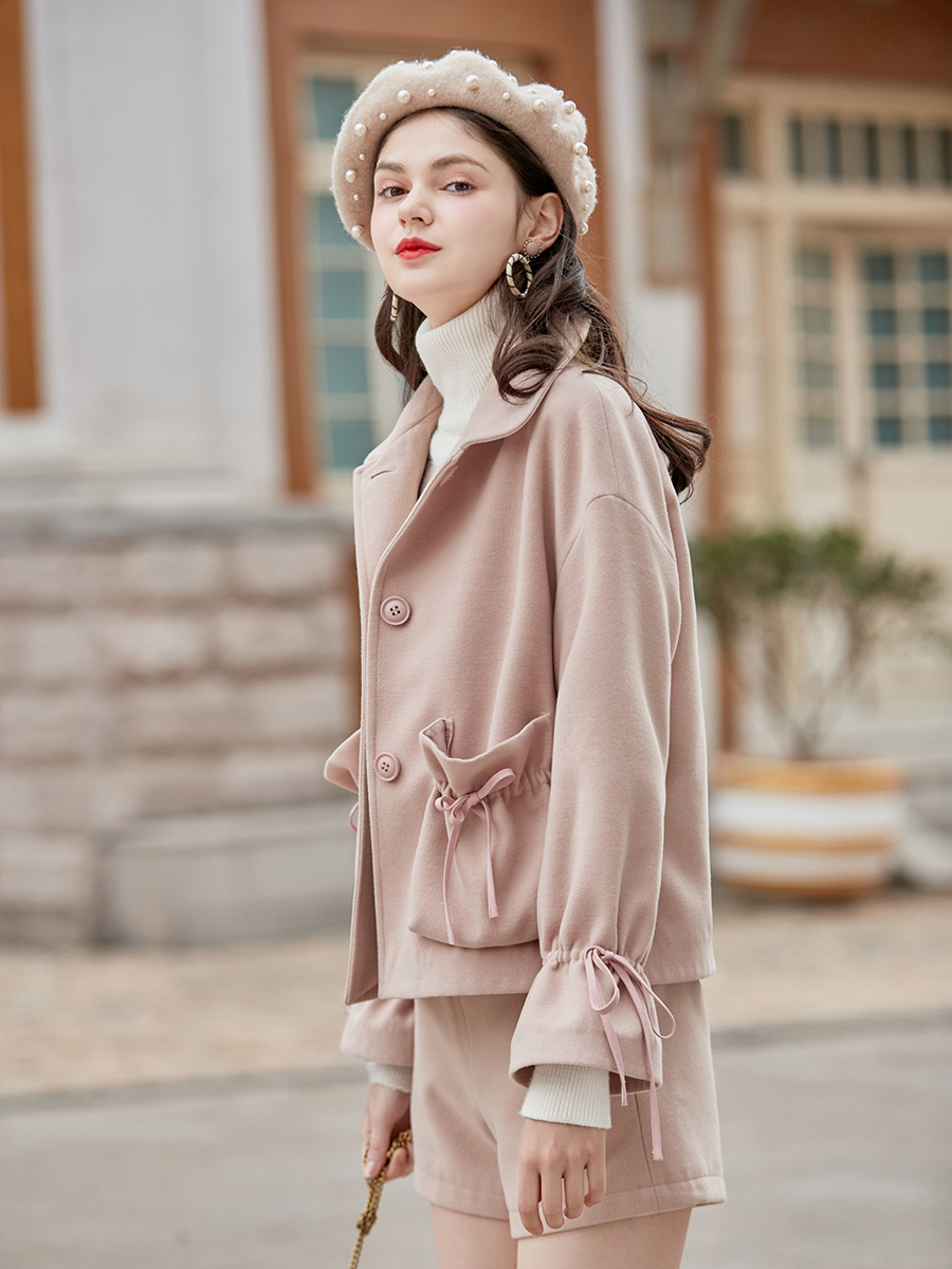 MG小象學院風毛呢外套女冬季新款高腰短褲蝴蝶結甜美短款呢子大衣
