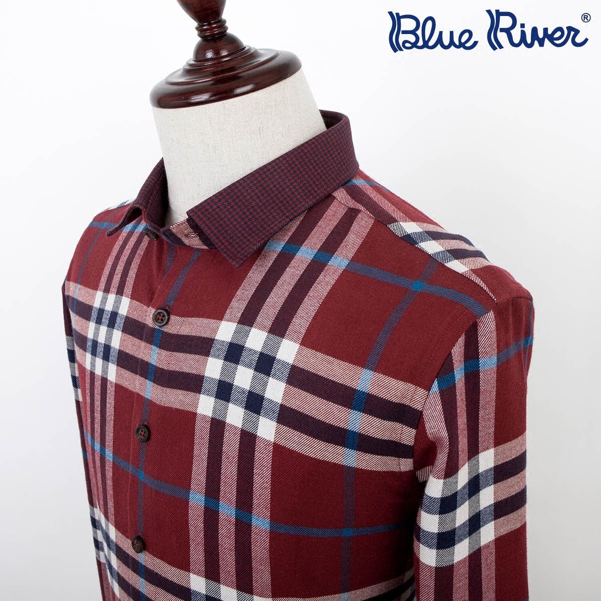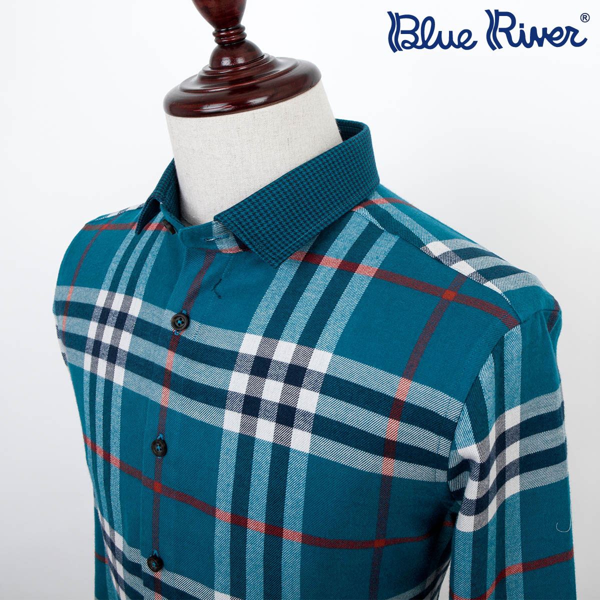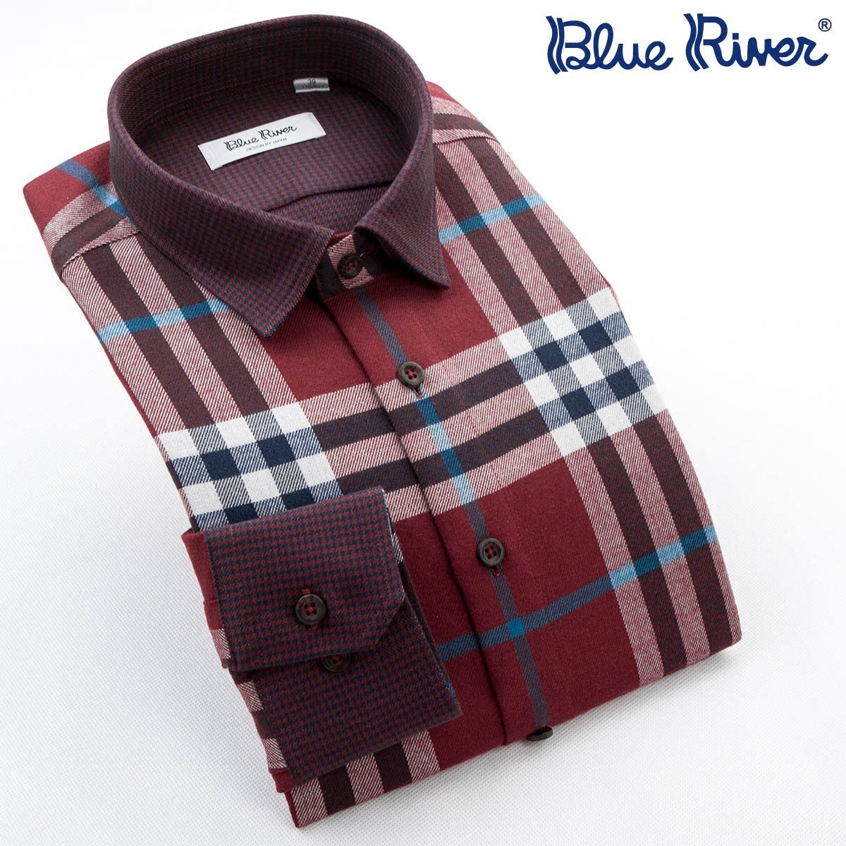 / 藍格子襯衫男長袖棉質保暖天絲秋季紅格紋襯衣藍河2018新品男裝