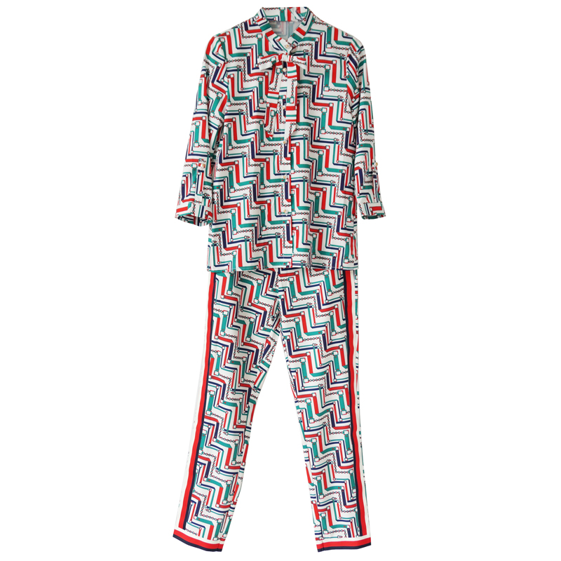 / 2018女秋裝新款名媛氣質休閑修身顯瘦時尚七分袖九分褲幾何套裝潮