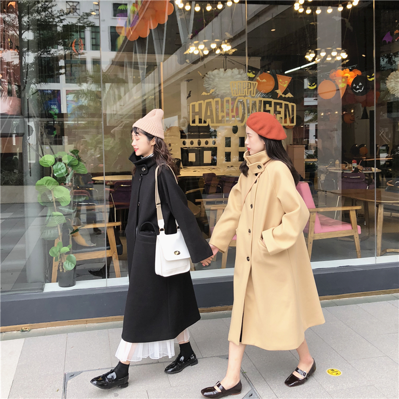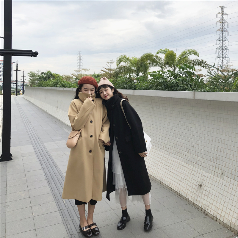 韓國秋冬新款chic時尚百搭氣質保暖寬松大衣氣質加厚長款呢子外套