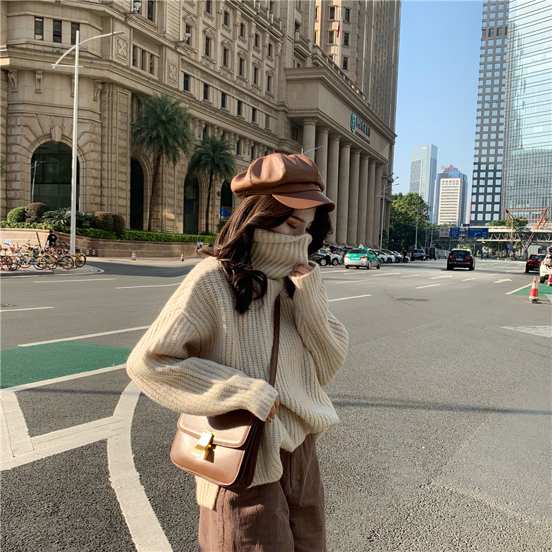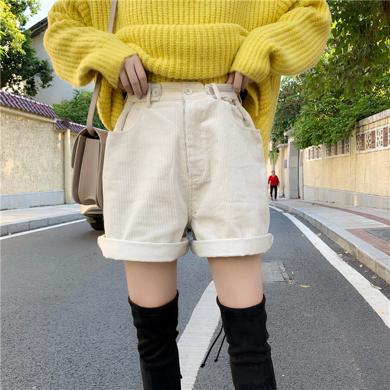 / 秋冬新款高領慵懶風毛衣寬松時尚卷邊燈芯絨短褲時尚套裝兩件套女
