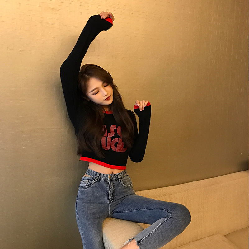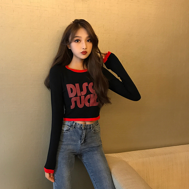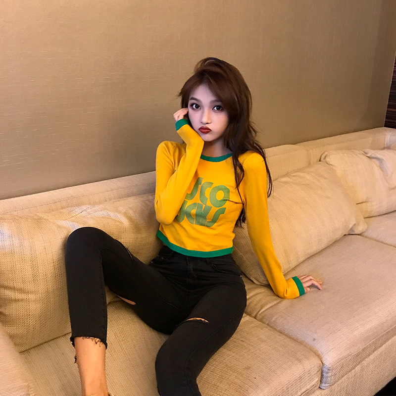 / 短款針織衫秋季chic早秋上衣女修身長袖百搭復古新款韓版打底T恤
