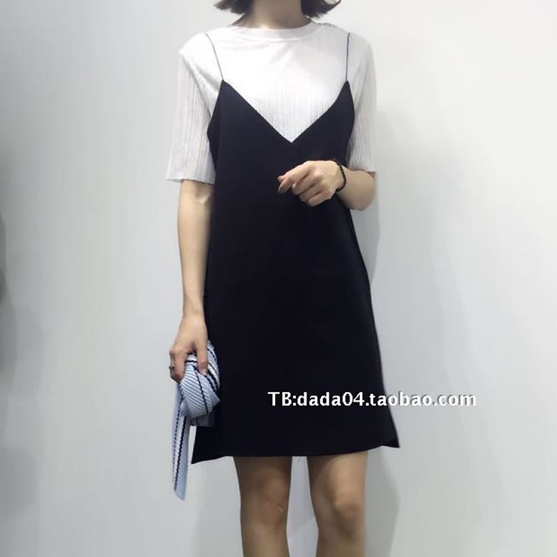 / 春裝新款韓版寬松顯瘦休閑百搭簡潔純色吊帶中裙連衣裙女裙子