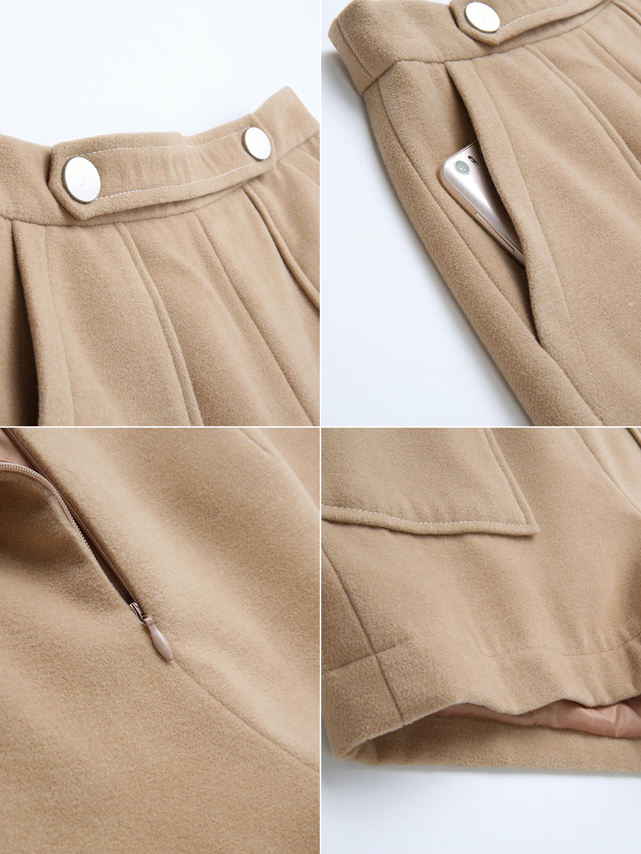 MG小象寬松毛呢短褲女高腰chic直筒褲冬季新款學生韓版休閑褲子潮