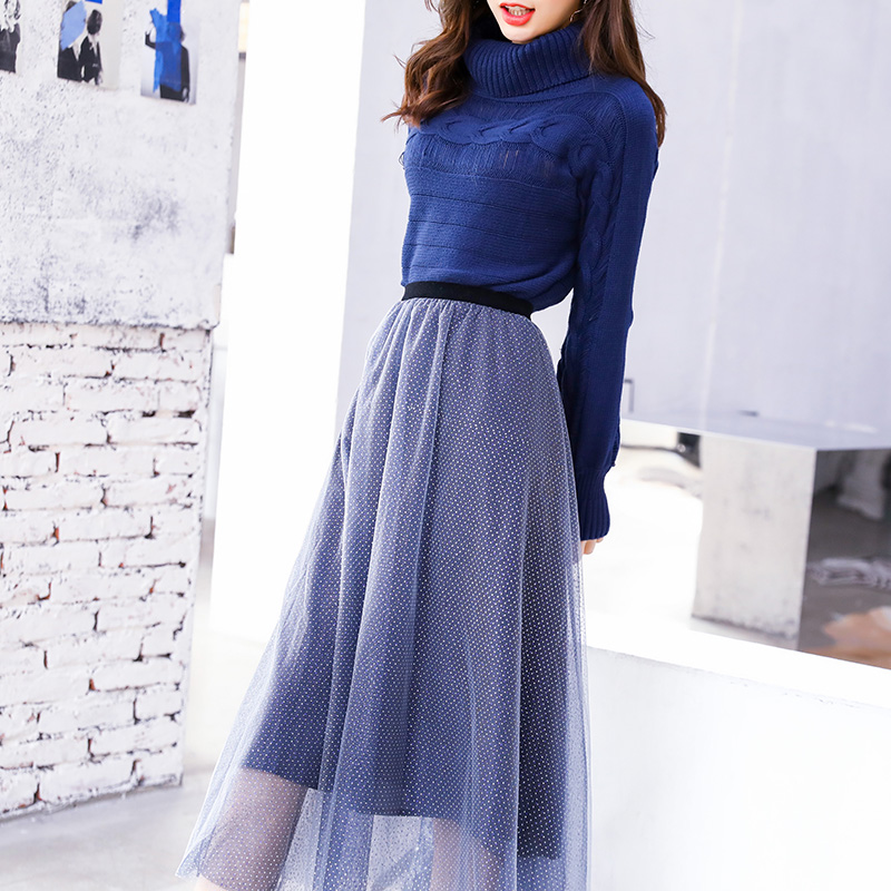 2018秋冬裝新款時髦網紅港味風毛衣網紗超仙小個子套裝裙女初秋季