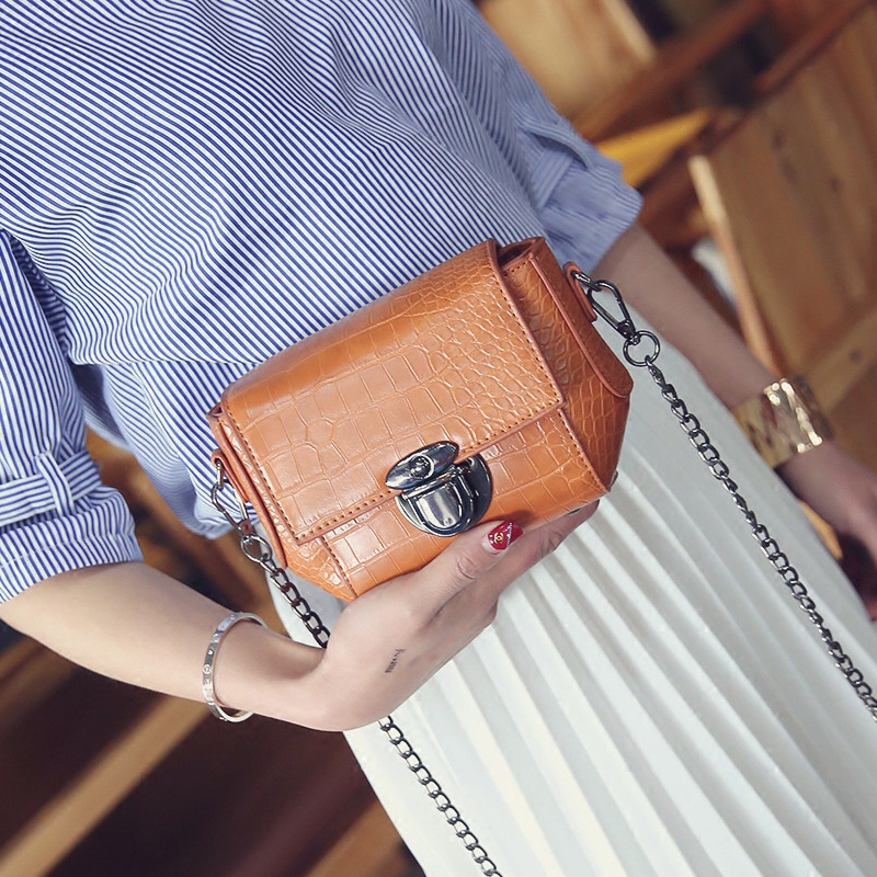 / 包包女新款鱷魚紋單肩女包小包韓版鏈條迷你小方包百搭斜挎包