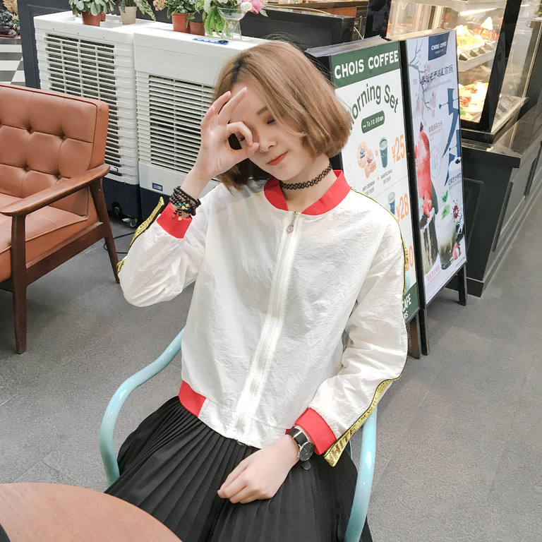/ 夏季防曬衣女長袖春裝新款韓版百搭亮片棒球服短款夾克小外套