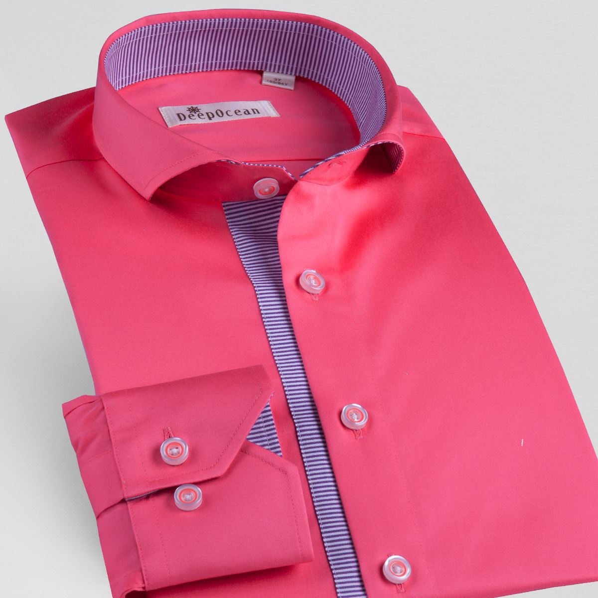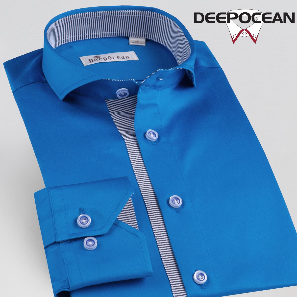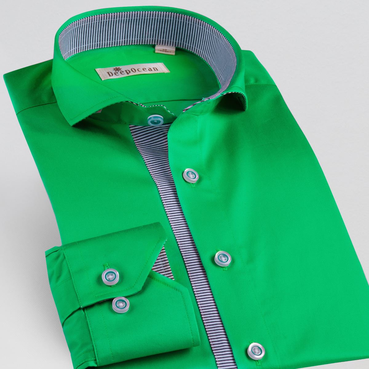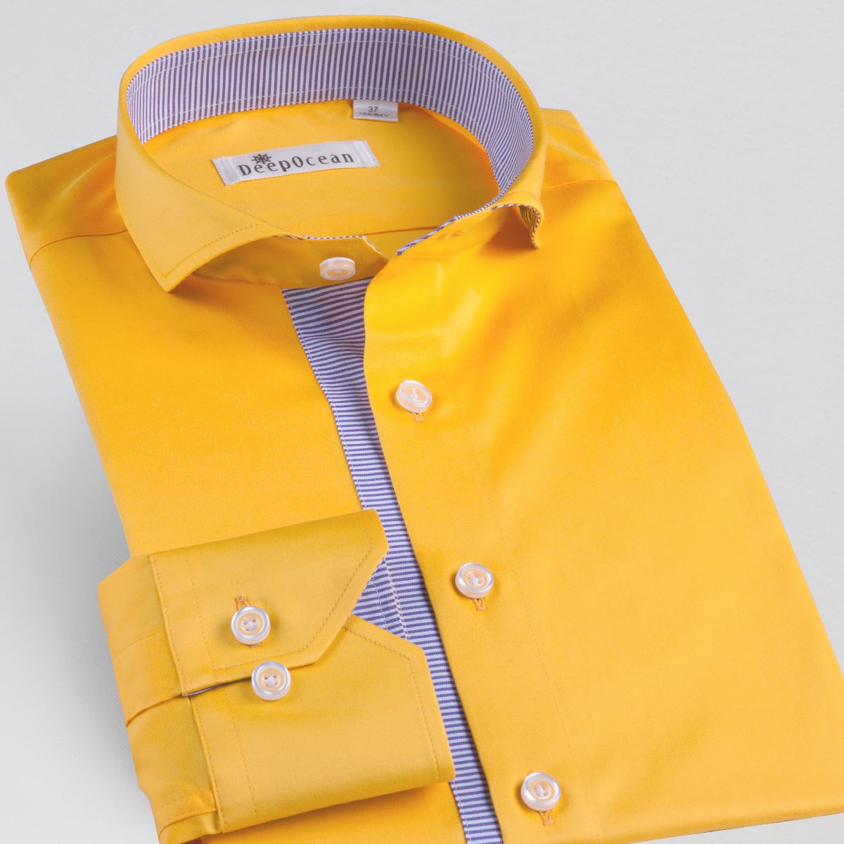 / 一字領溫莎領門襟條紋橫拼接時尚純色絲光棉長袖襯衫男士休閑襯衣