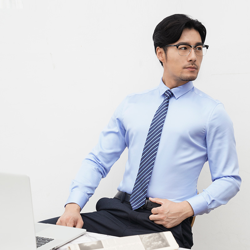小領襯衫男長袖襯衣男士寸純棉絲光棉青年商務正裝修身韓版潮休閑