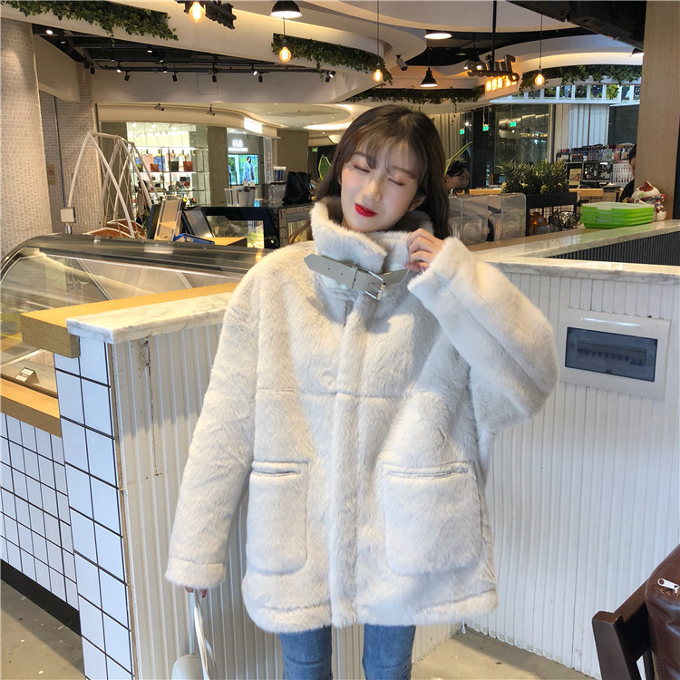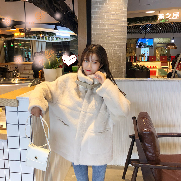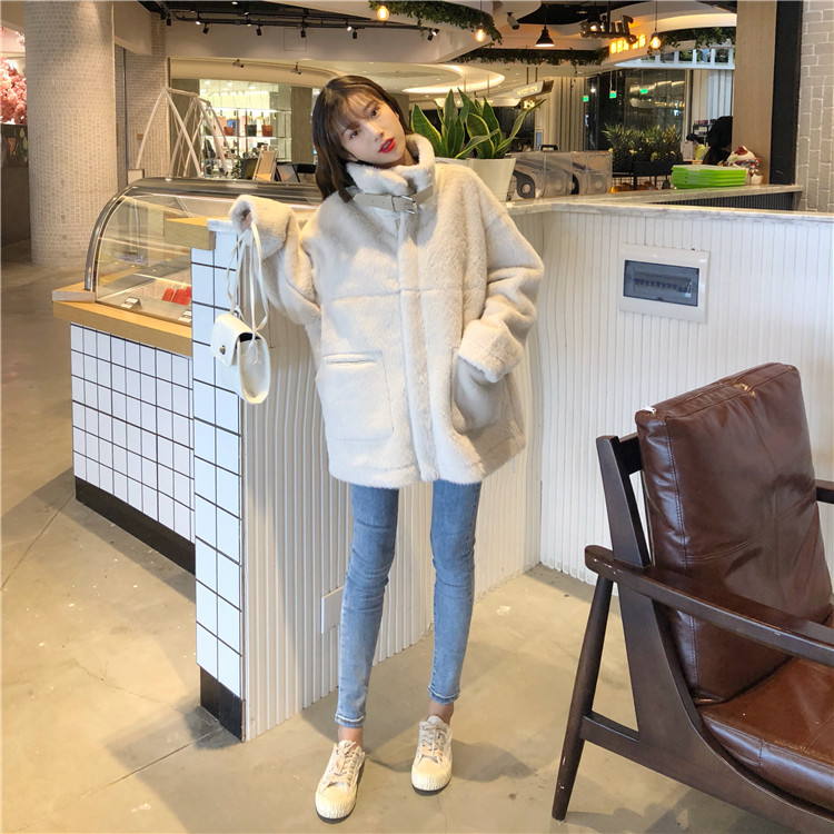 / 韓版新款秋冬時尚百搭長袖復古寬松高領中長款毛絨加厚保暖外套女