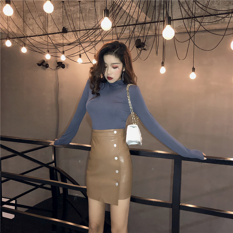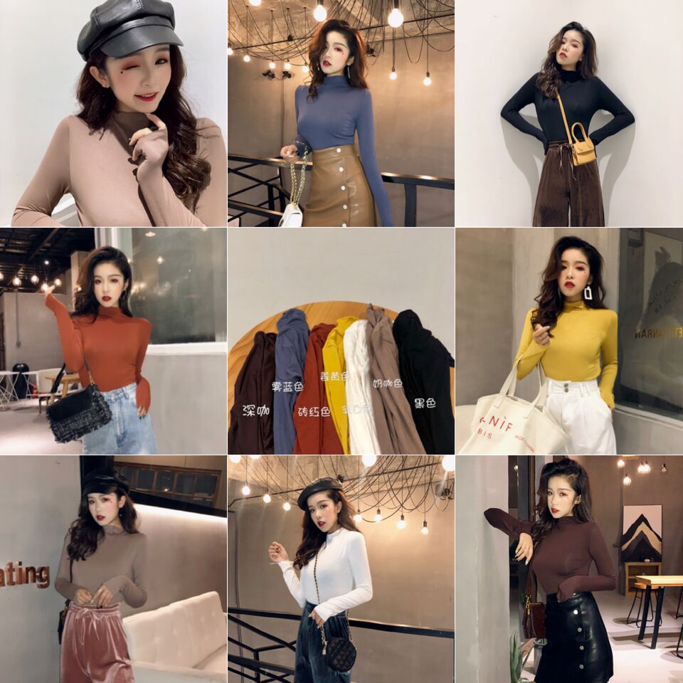 2018秋裝新款上衣女復古溫柔半高領貼身顯瘦百搭外穿打底衫T恤潮