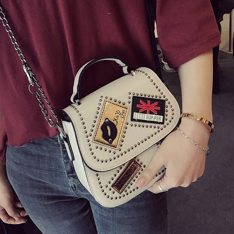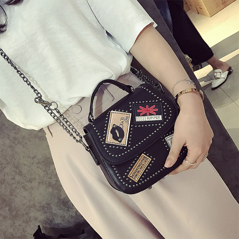 / 包包女新款潮韓版鏈條小包個性徽章手提包復古單肩女包斜挎包