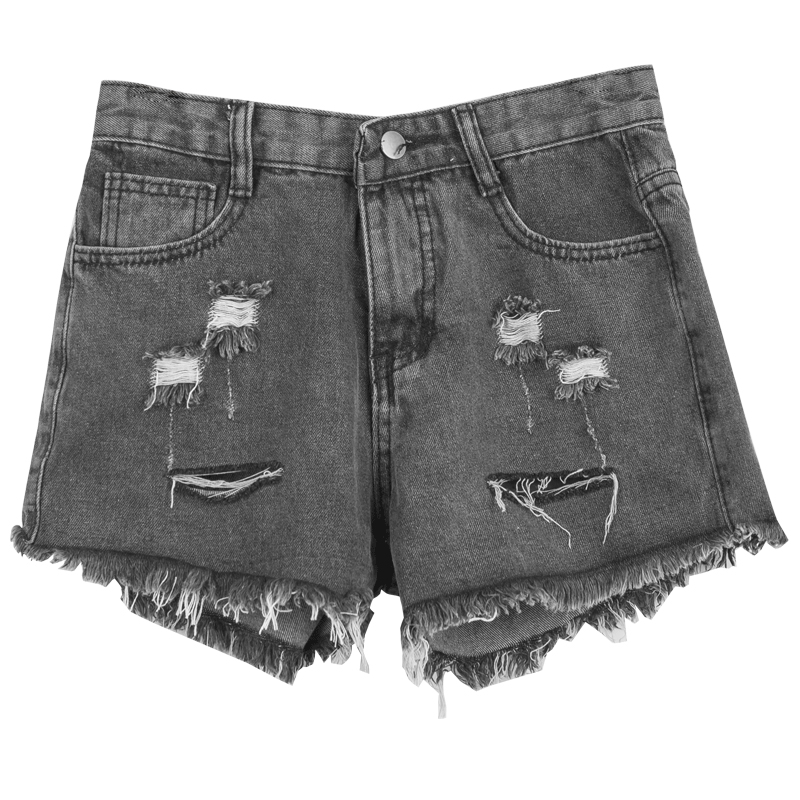 / 夏季新款韓版女裝高腰破洞牛仔短褲潮毛邊黑色闊腿顯瘦熱褲女