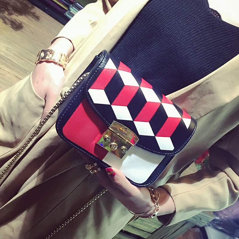 / 包包女新款潮撞色單肩女包小包韓版百搭斜挎包鏈條迷你小方包