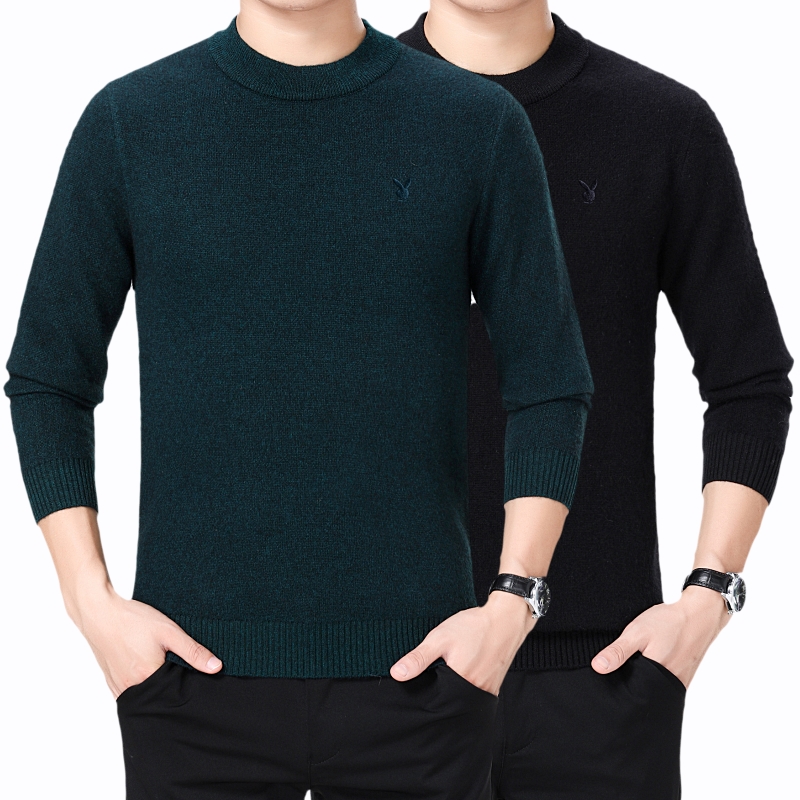 冬裝花花公子正品中年男士山羊絨毛衣商務男裝圓領加厚大碼羊毛衫
