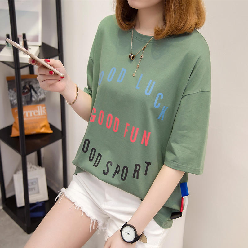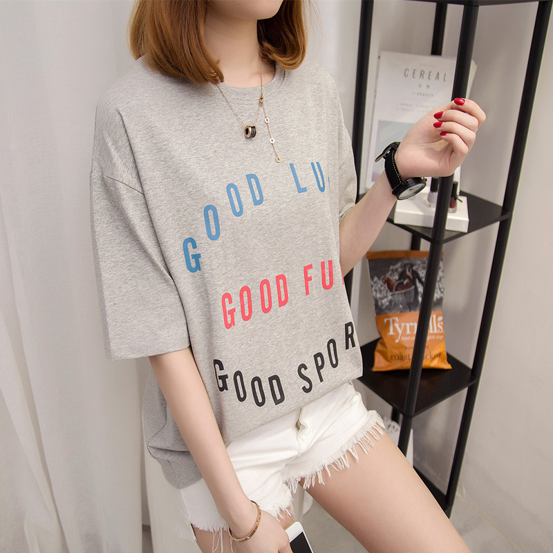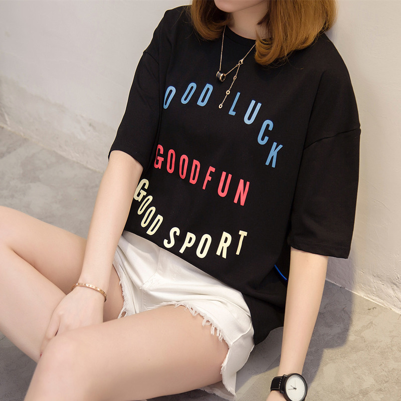 短袖t恤女寬松中長袖打底體恤衫字母上衣女夏裝新款女百搭